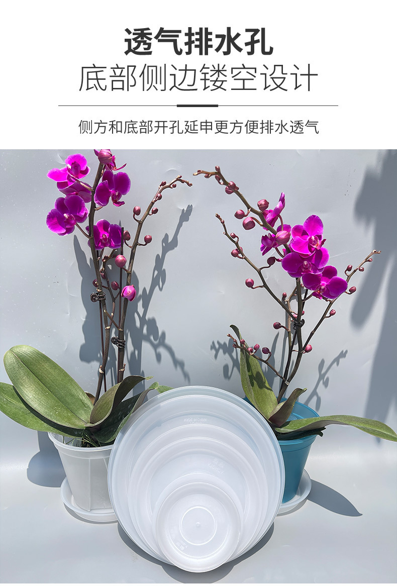 투명한 뿌리 조절 녹색 산 분지 통기성 호접란 플라스틱 꽃 냄비 장미 꽃 심기 분지 흰색 두꺼운 갤런 분지