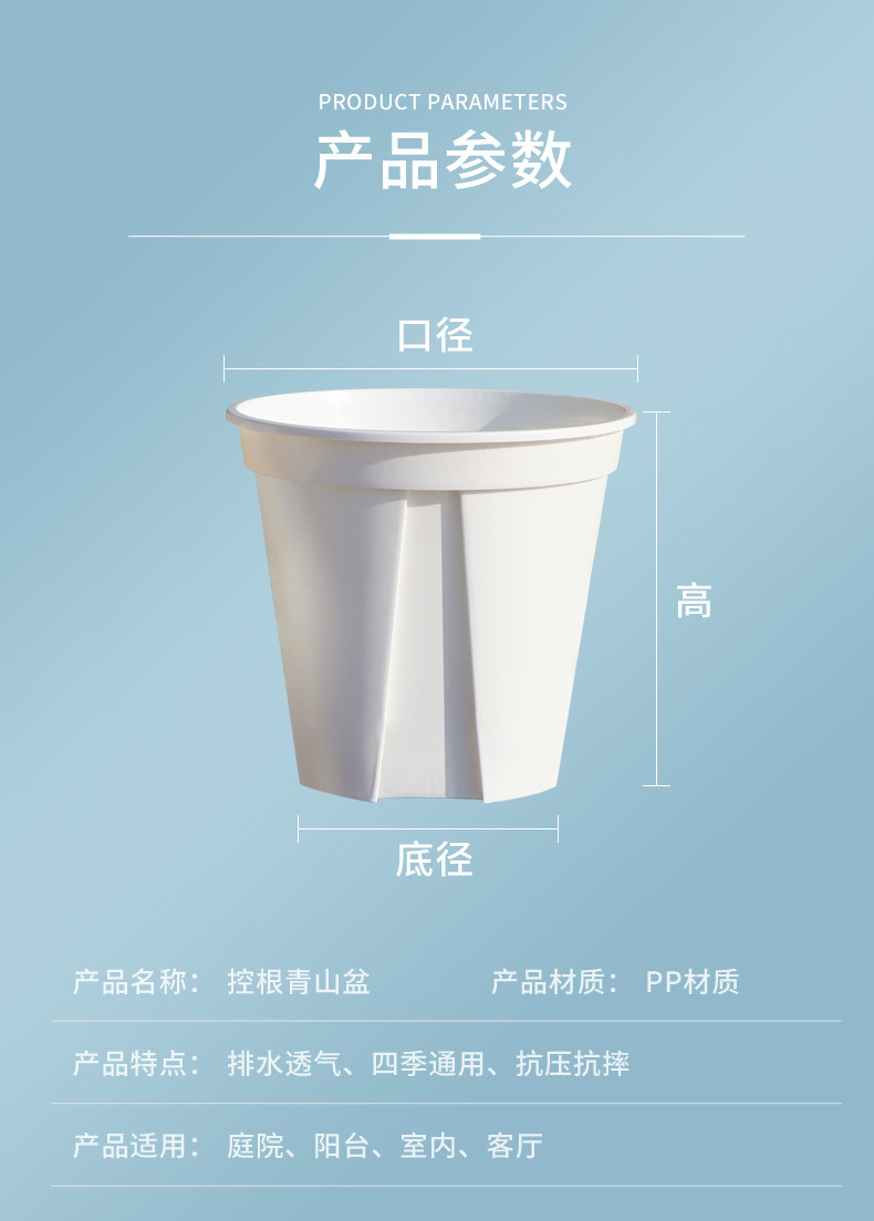 투명한 뿌리 조절 녹색 산 분지 통기성 호접란 플라스틱 꽃 냄비 장미 꽃 심기 분지 흰색 두꺼운 갤런 분지스토어 가기