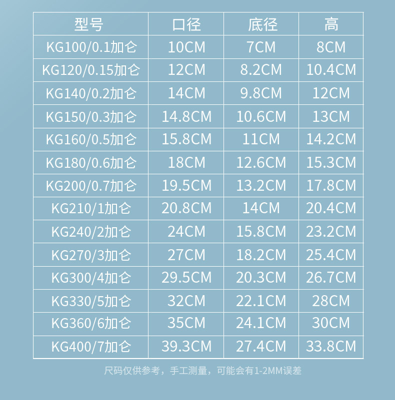 • KG180/0.6 갤런 (외경 18 * 내경 16.7 * 높이 cm)