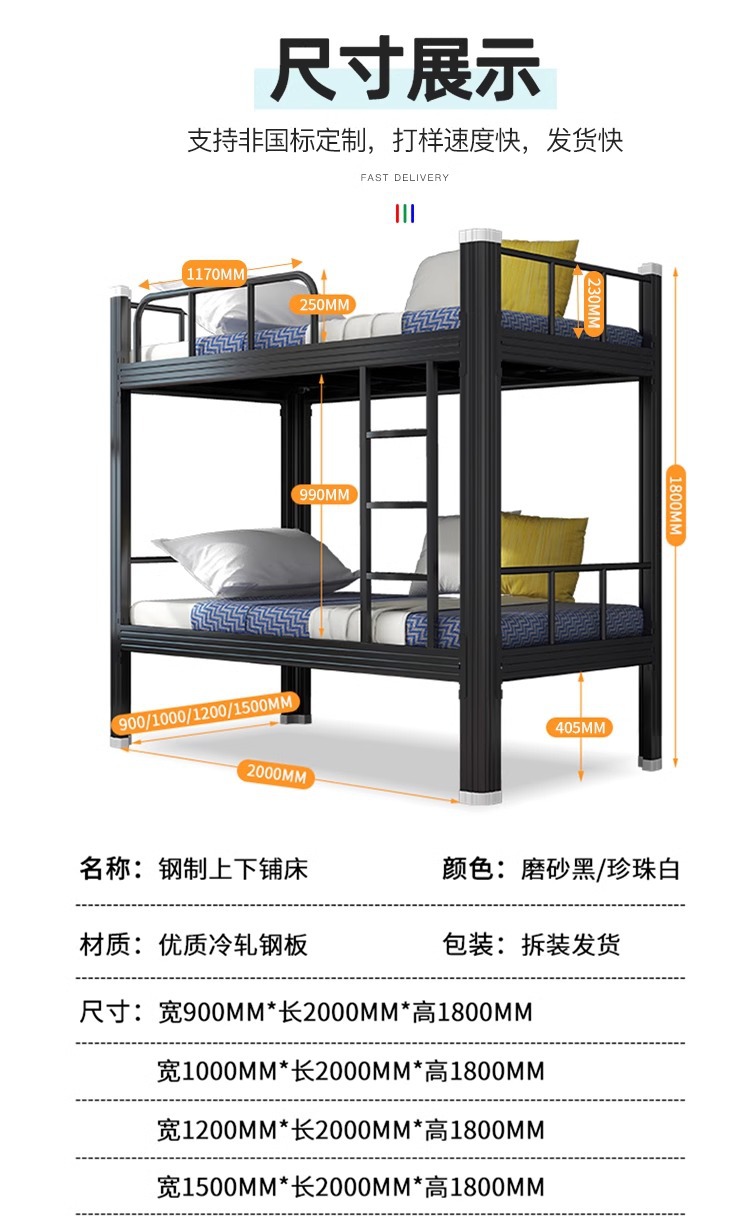 상하 이층 철제 침대 높고 낮은 침대 직원 기숙사 이층 침대 건설 현장 철제 침대 학생 아파트 철제 이층 침대