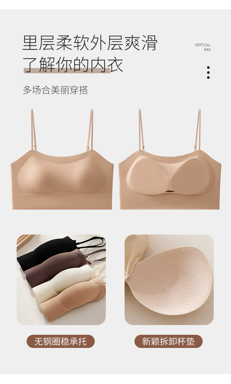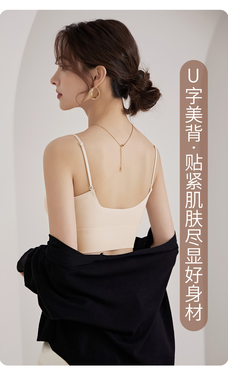 2024 새로운 원활한 속옷 U 자형 뷰티 백 무선 브래지어 고정 통합 컵베이스 스트랩 가슴 여름