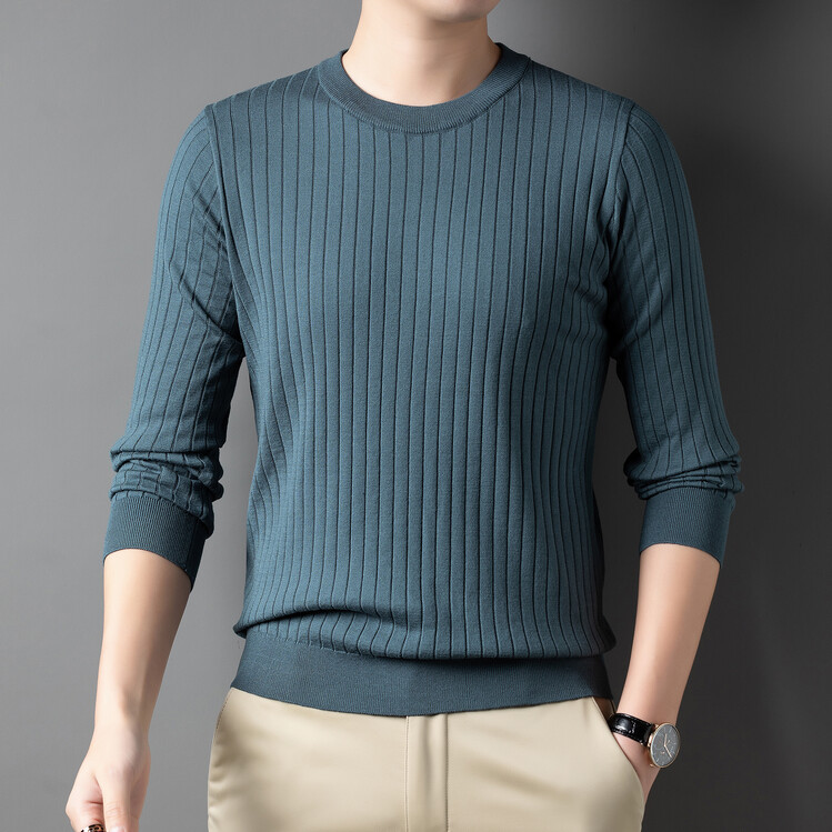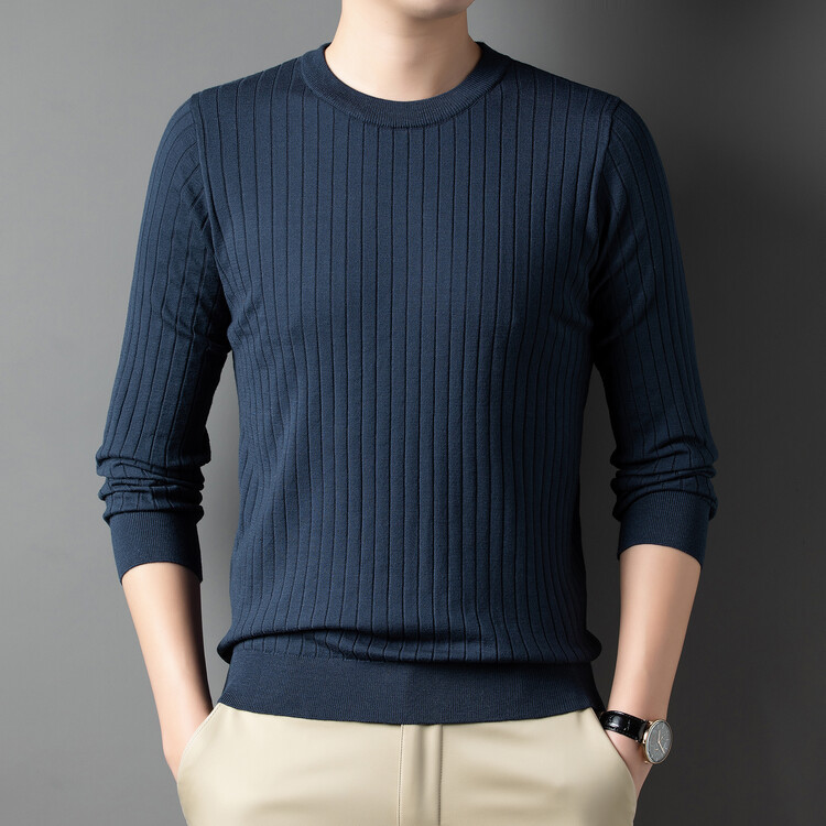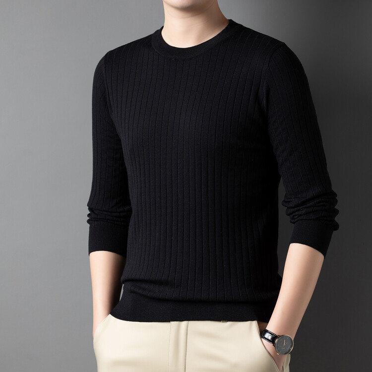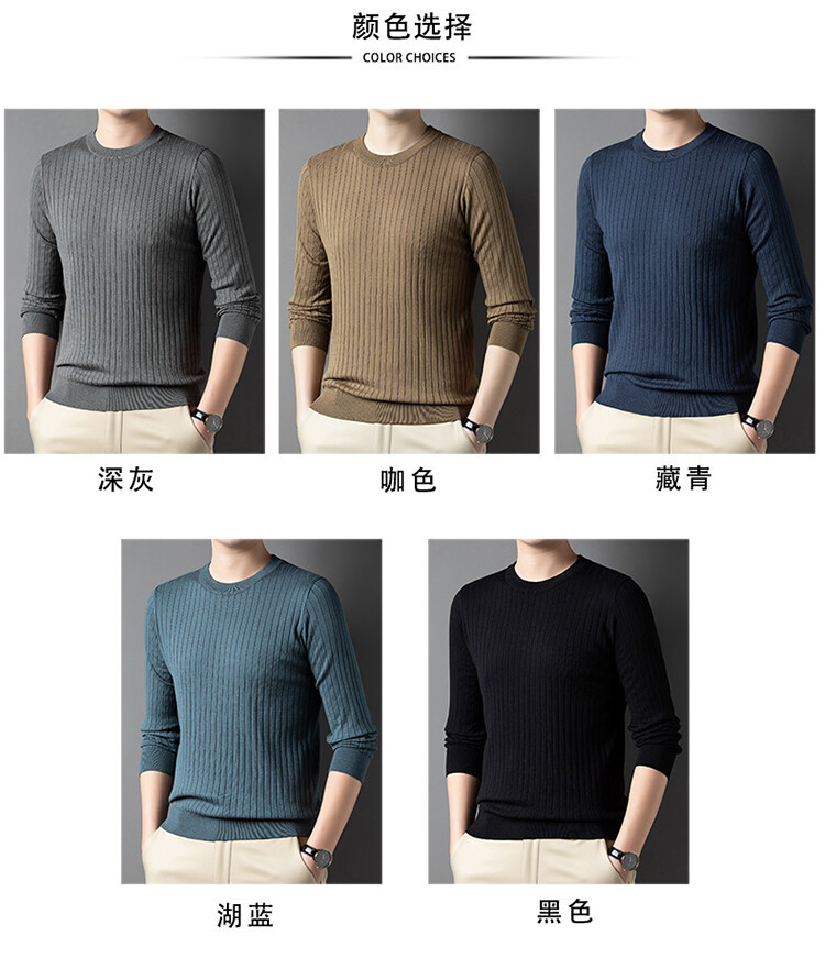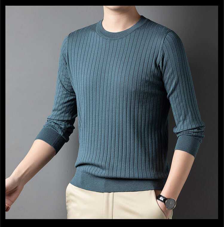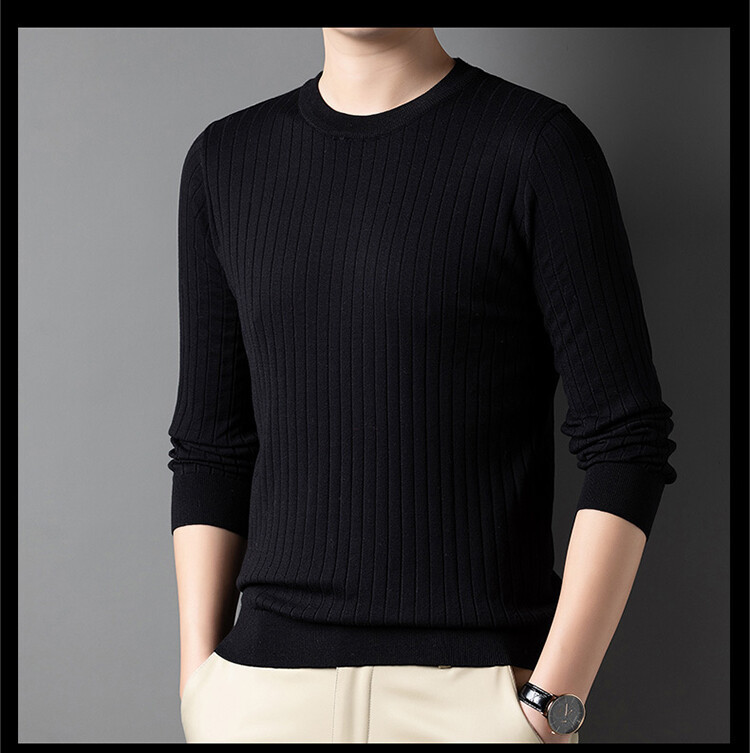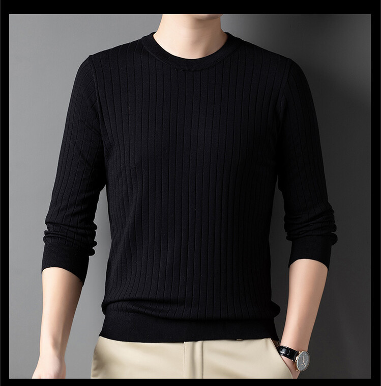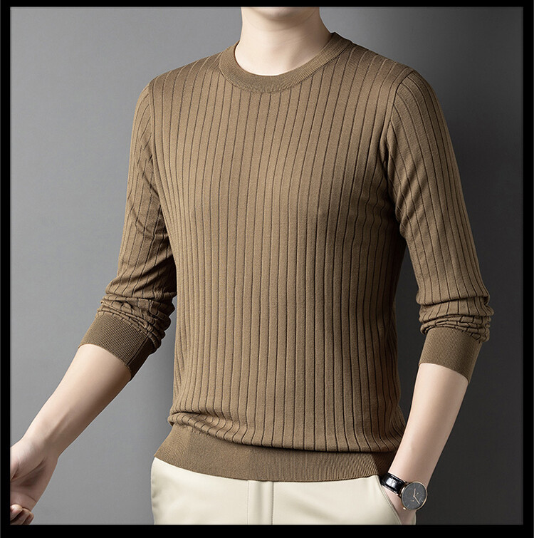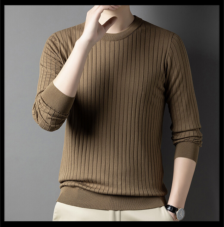 2024 아마존 AliExpress 새로운 남성 수직 줄무늬 스웨터 간단한 단색 매일 스웨터스토어 가기