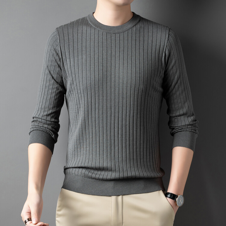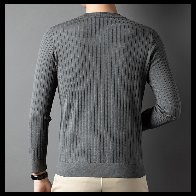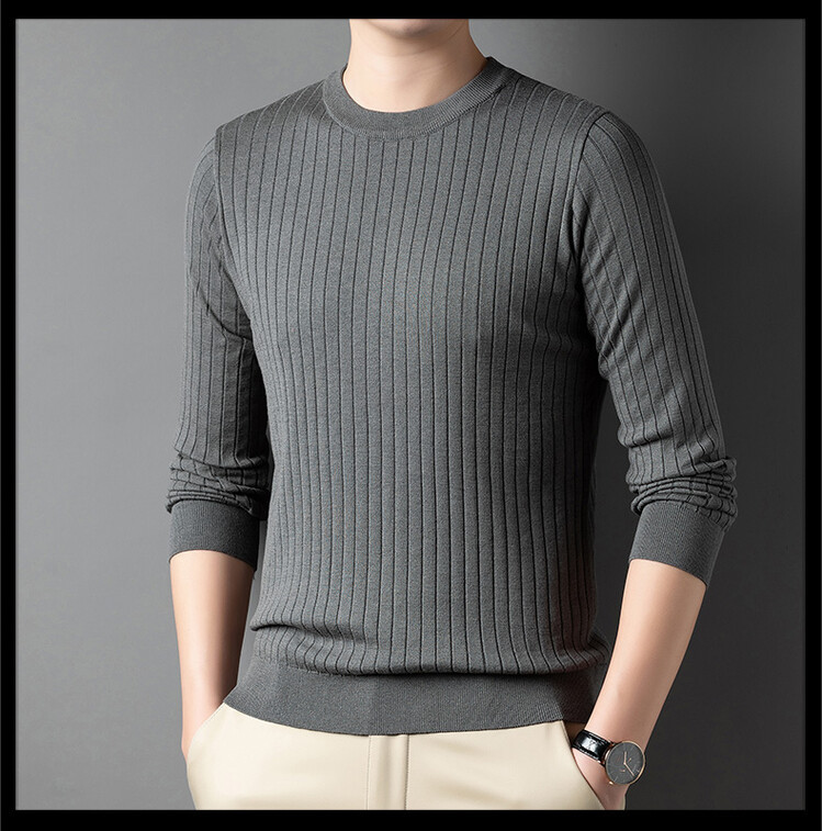 2024 아마존 AliExpress 새로운 남성 수직 줄무늬 스웨터 간단한 단색 매일 스웨터