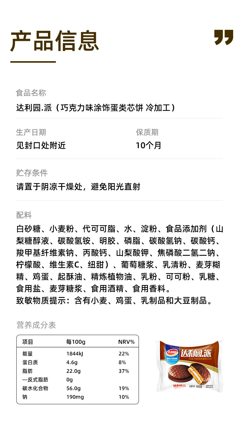 【달리위안 초콜릿 맛 파이 520g】과자 간식 도매