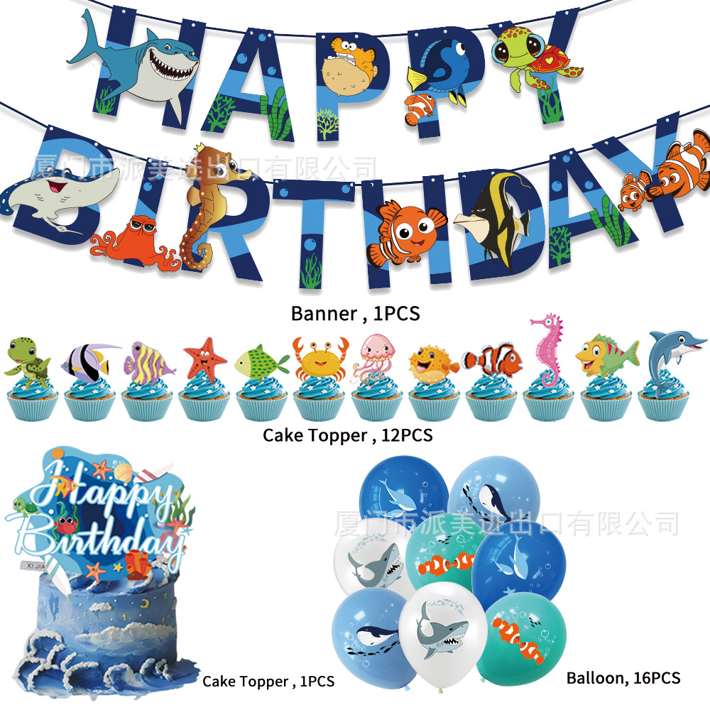 套装包括:1条拉旗+16个乳胶气球+12个蛋糕插旗+1个蛋糕插牌