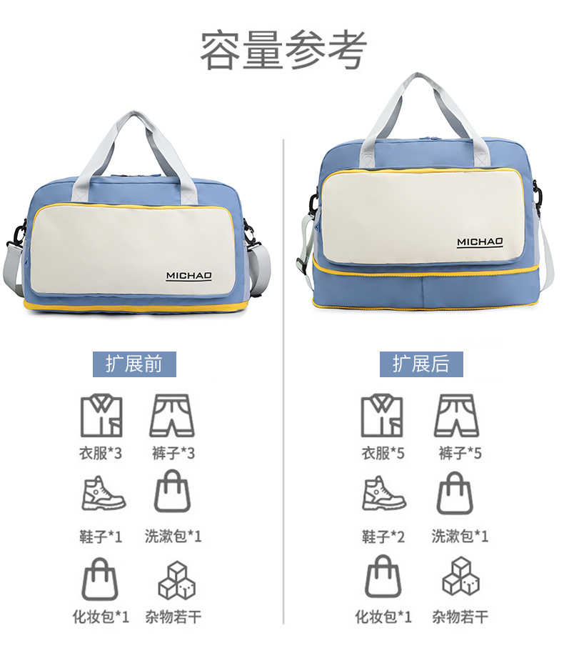 2024 새로운 확장 여행 가방 패션 바느질 습식 및 건식 분리 스포츠 피트니스 가방 레저 짧은 여행 수하물 가방