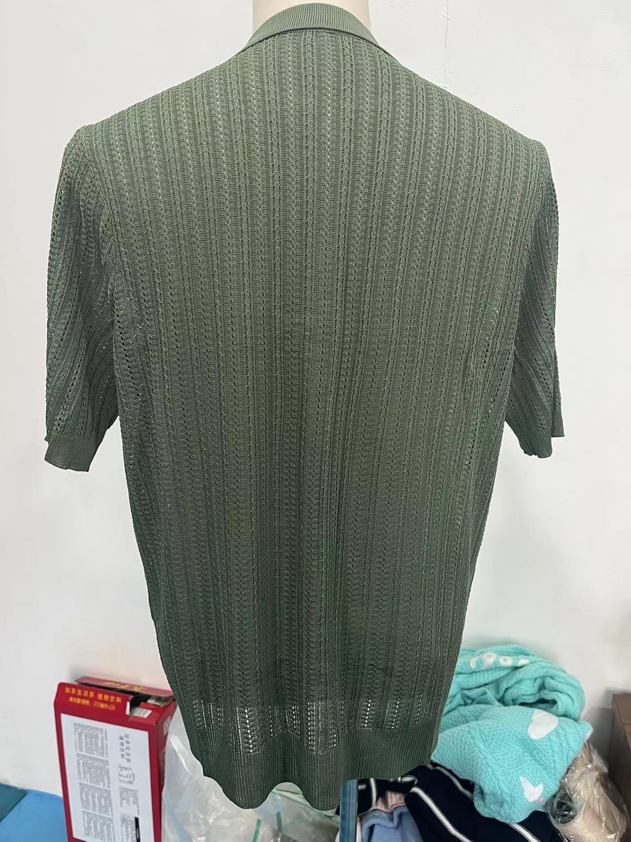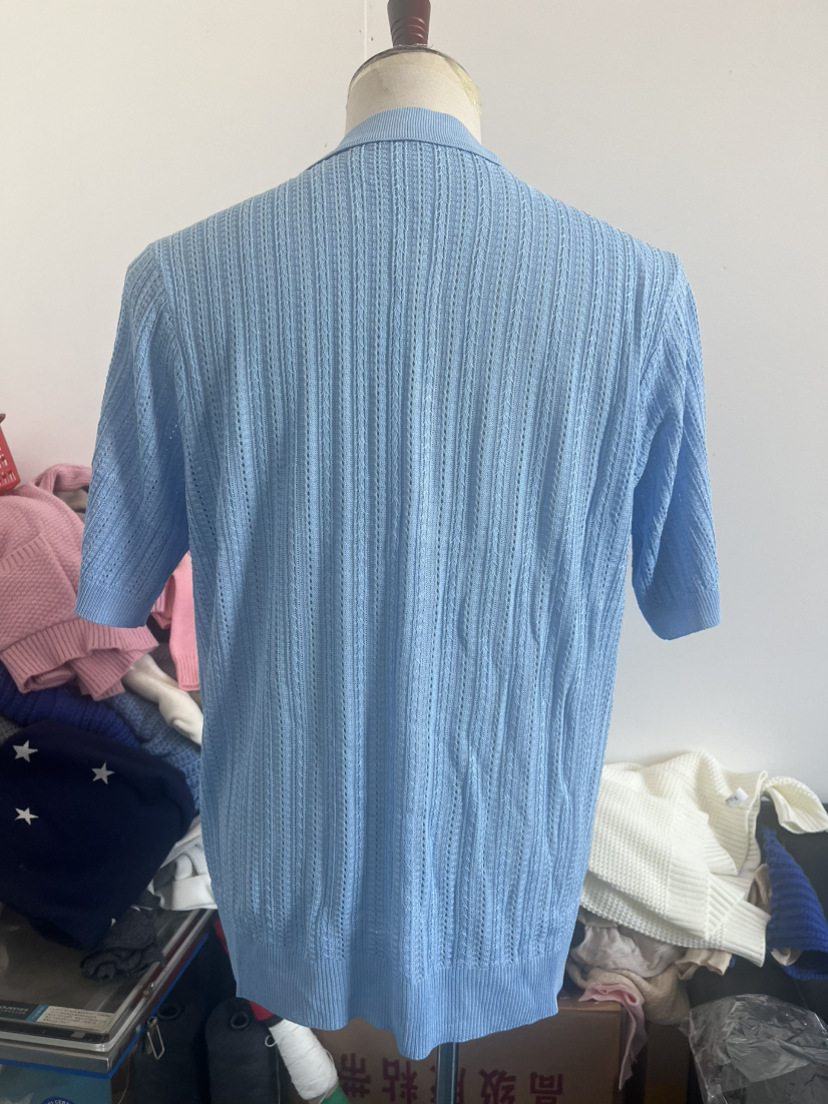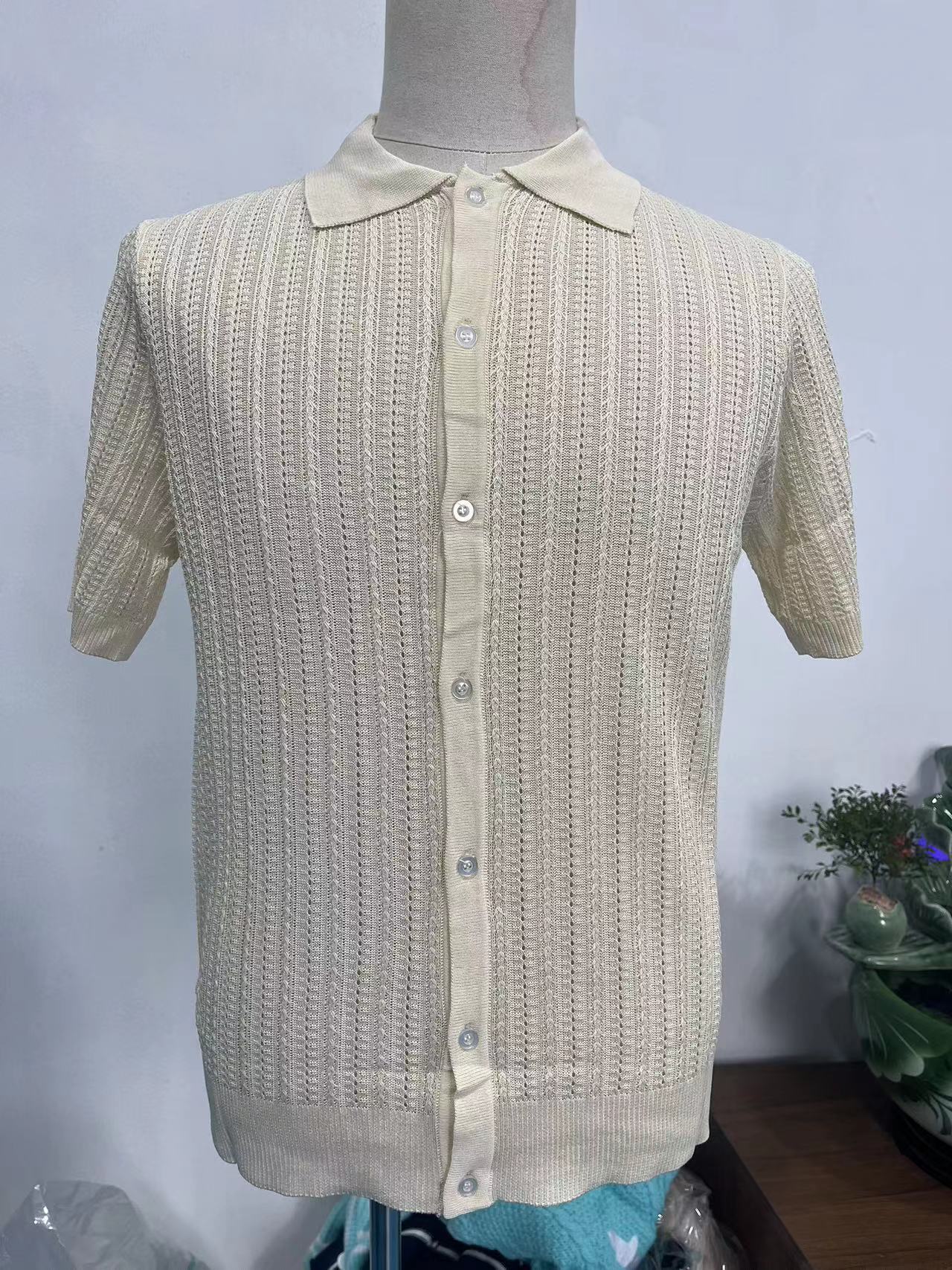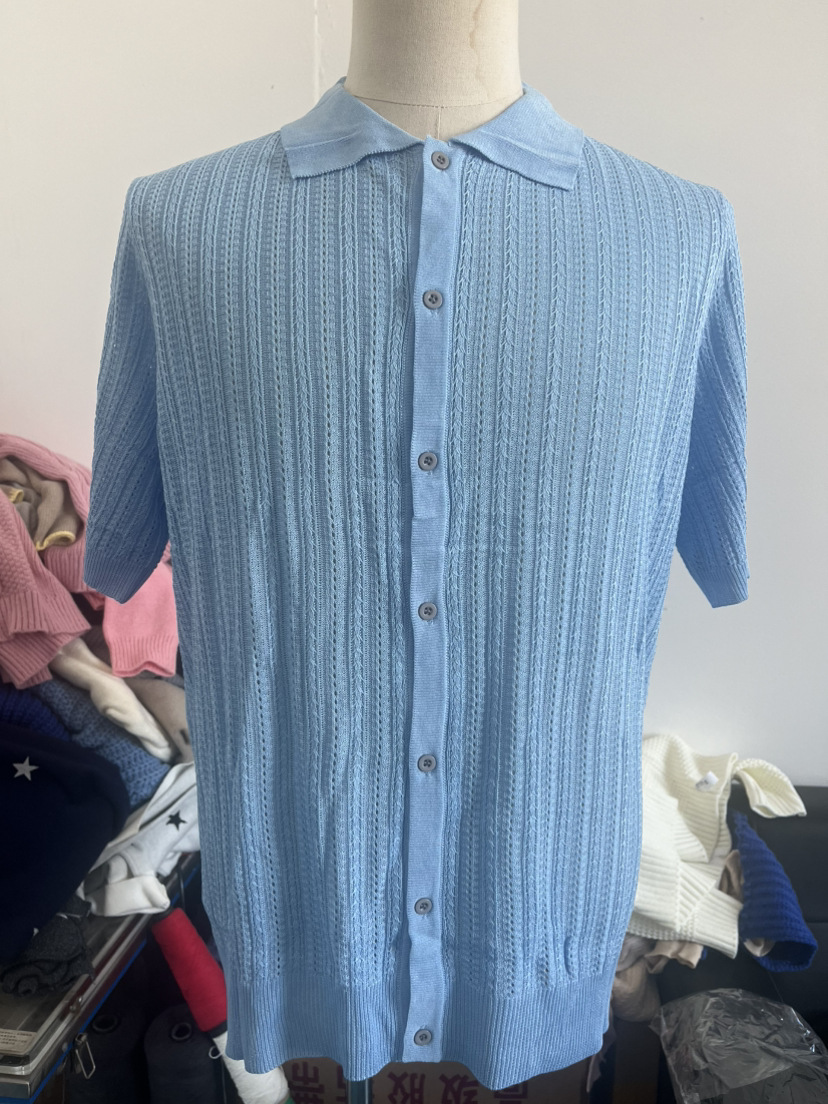 유럽과 미국 남성 캐주얼 탑 여름 시원한 니트 남성 셔츠 짧은 소매 옷깃 단색 속이 빈 통기성 남성 의류스토어 가기
