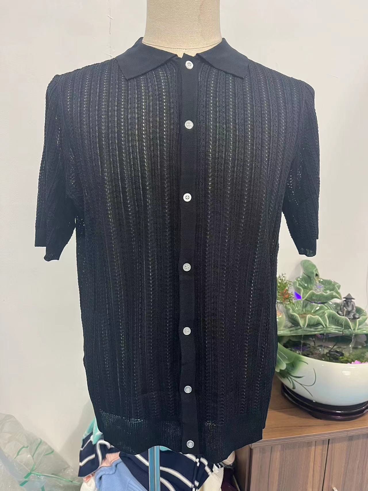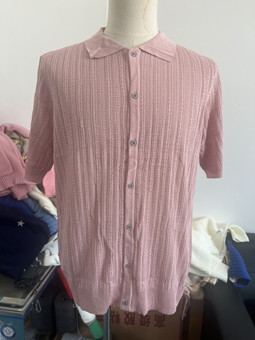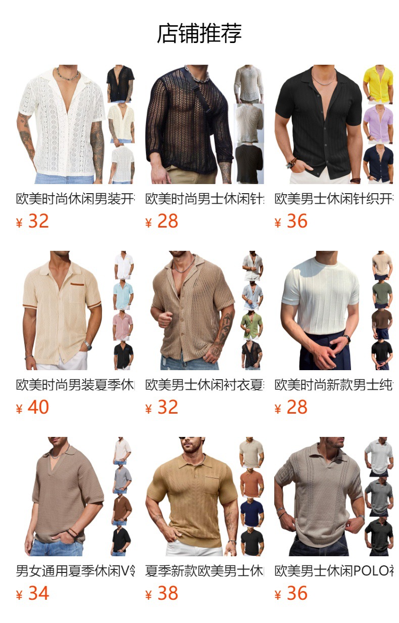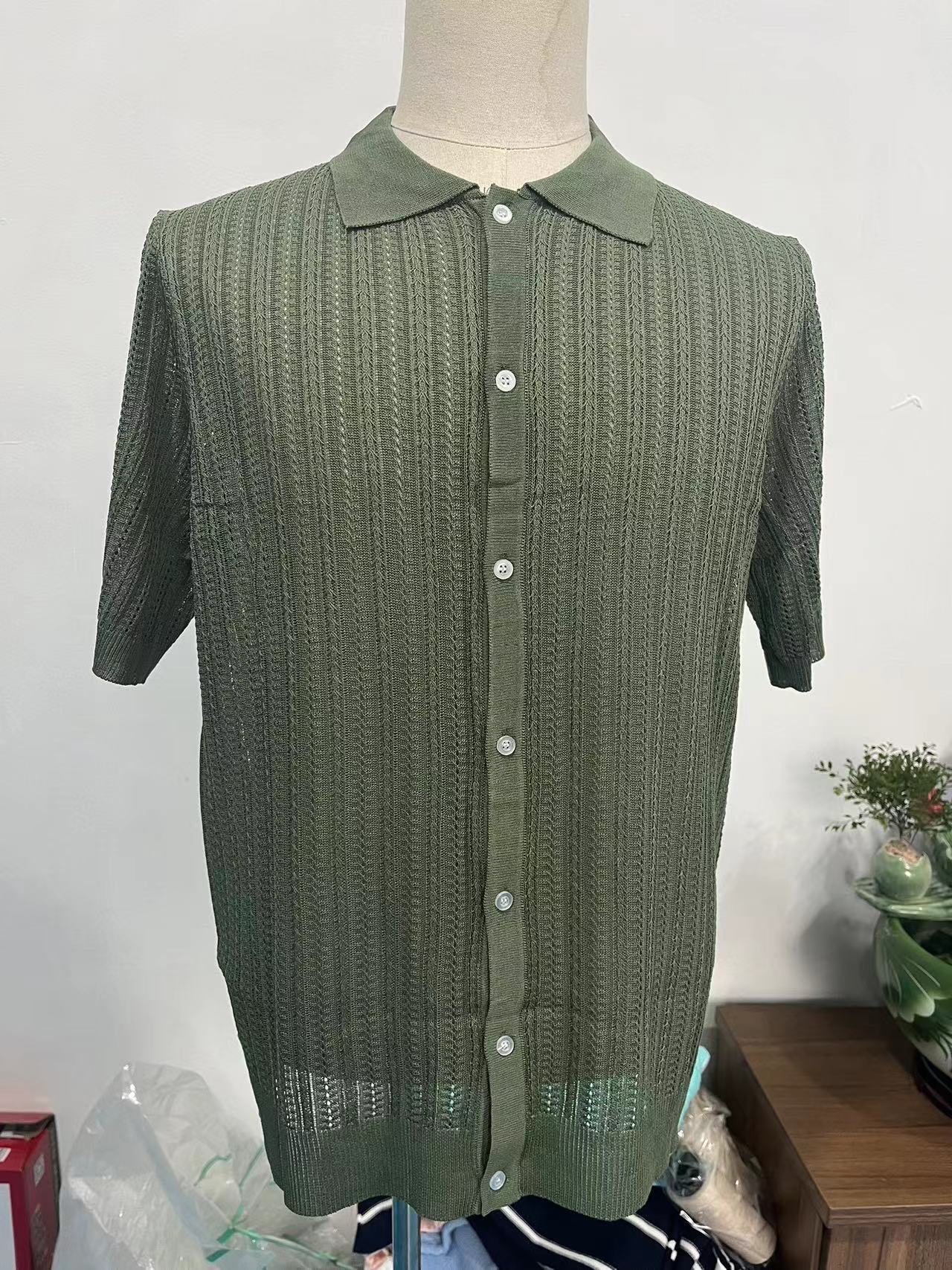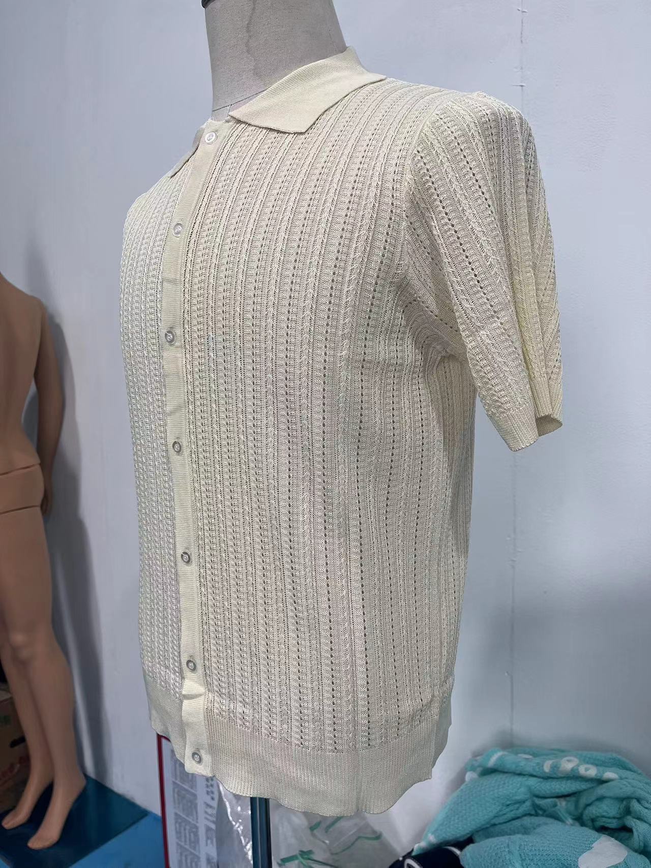 유럽과 미국 남성 캐주얼 탑 여름 시원한 니트 남성 셔츠 짧은 소매 옷깃 단색 속이 빈 통기성 남성 의류스토어 가기