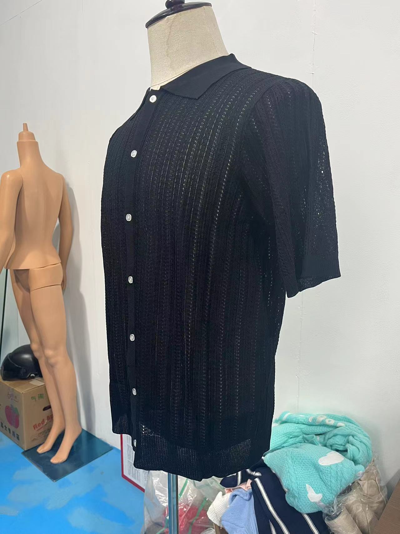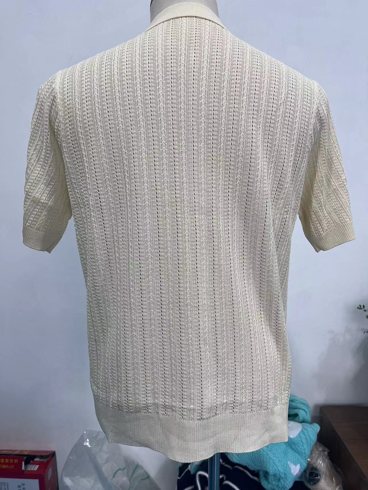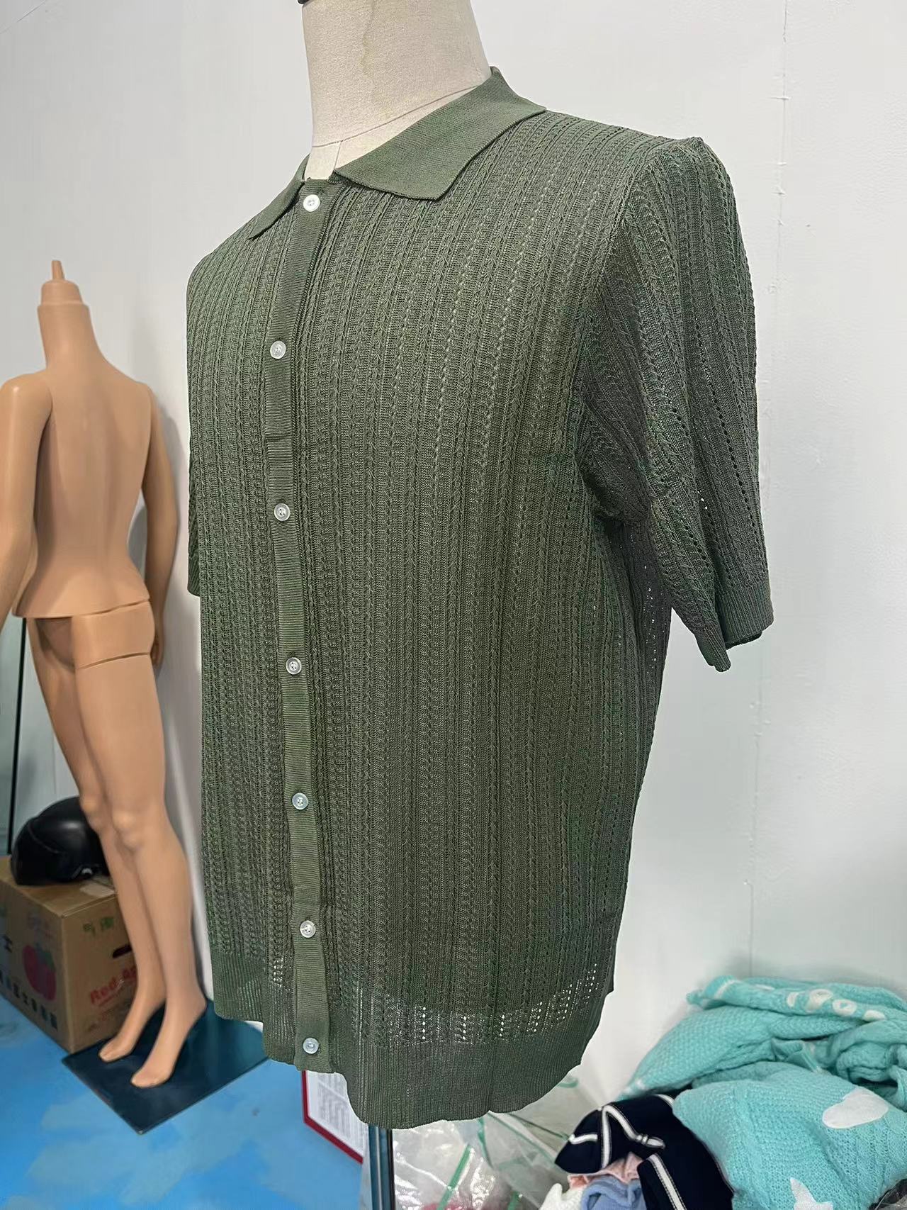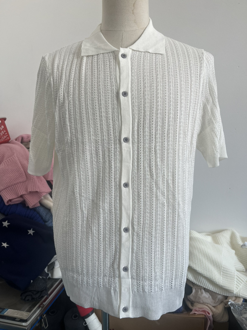 유럽과 미국 남성 캐주얼 탑 여름 시원한 니트 남성 셔츠 짧은 소매 옷깃 단색 속이 빈 통기성 남성 의류스토어 가기