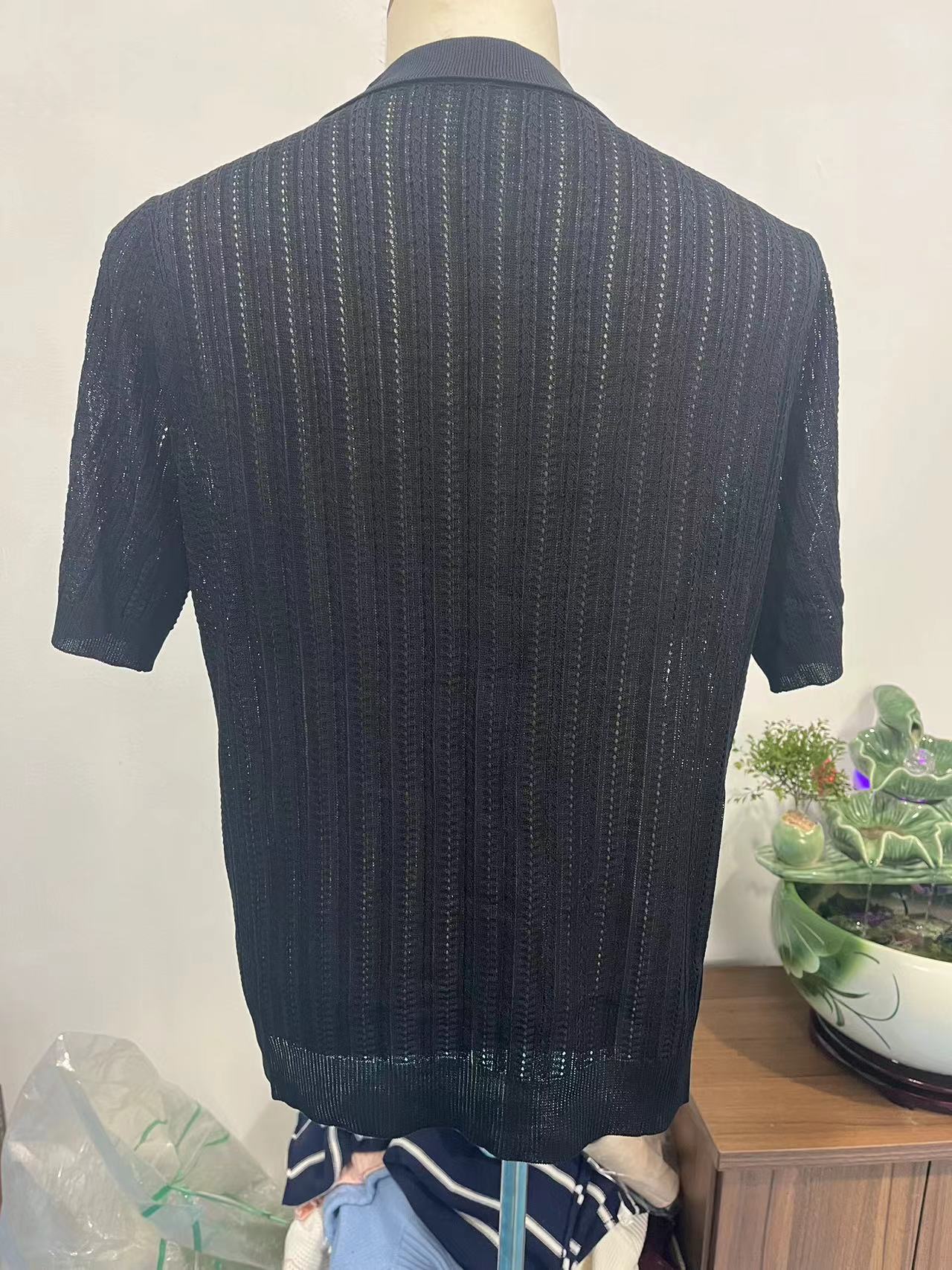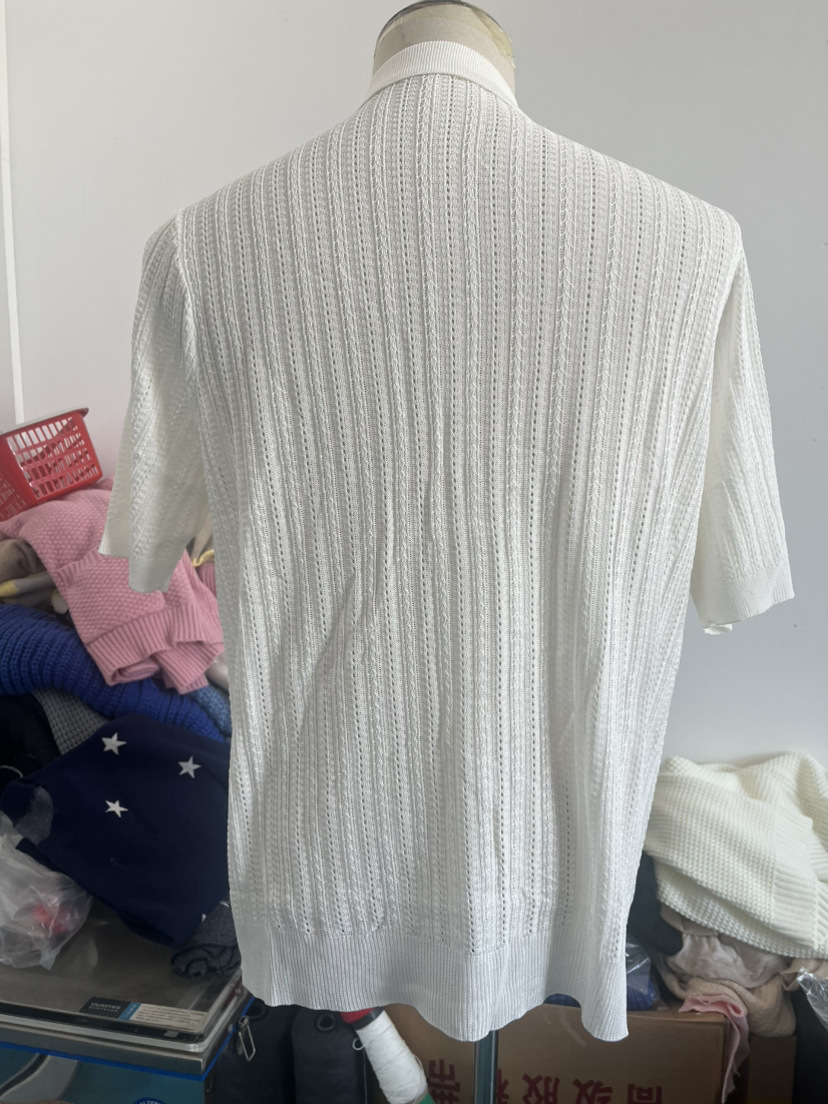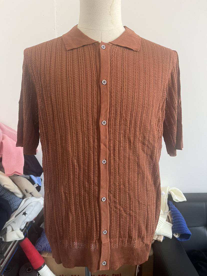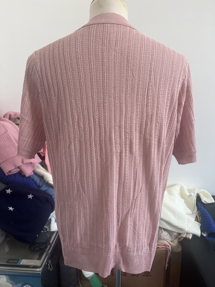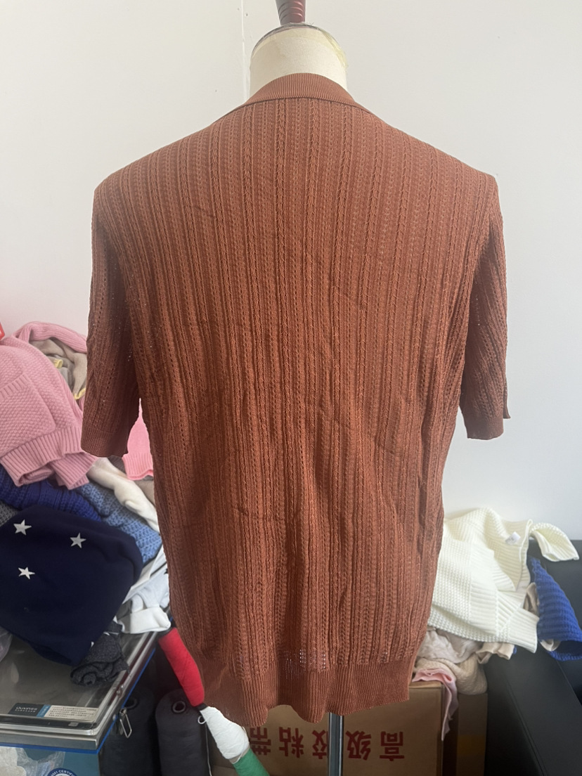 유럽과 미국 남성 캐주얼 탑 여름 시원한 니트 남성 셔츠 짧은 소매 옷깃 단색 속이 빈 통기성 남성 의류스토어 가기