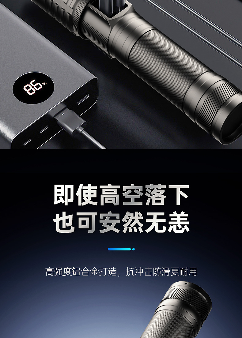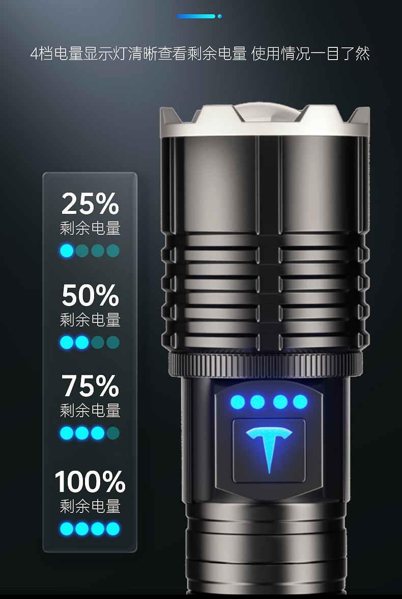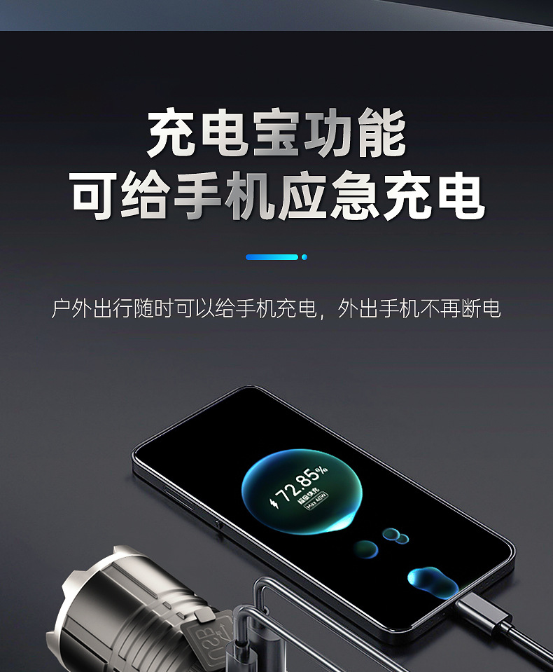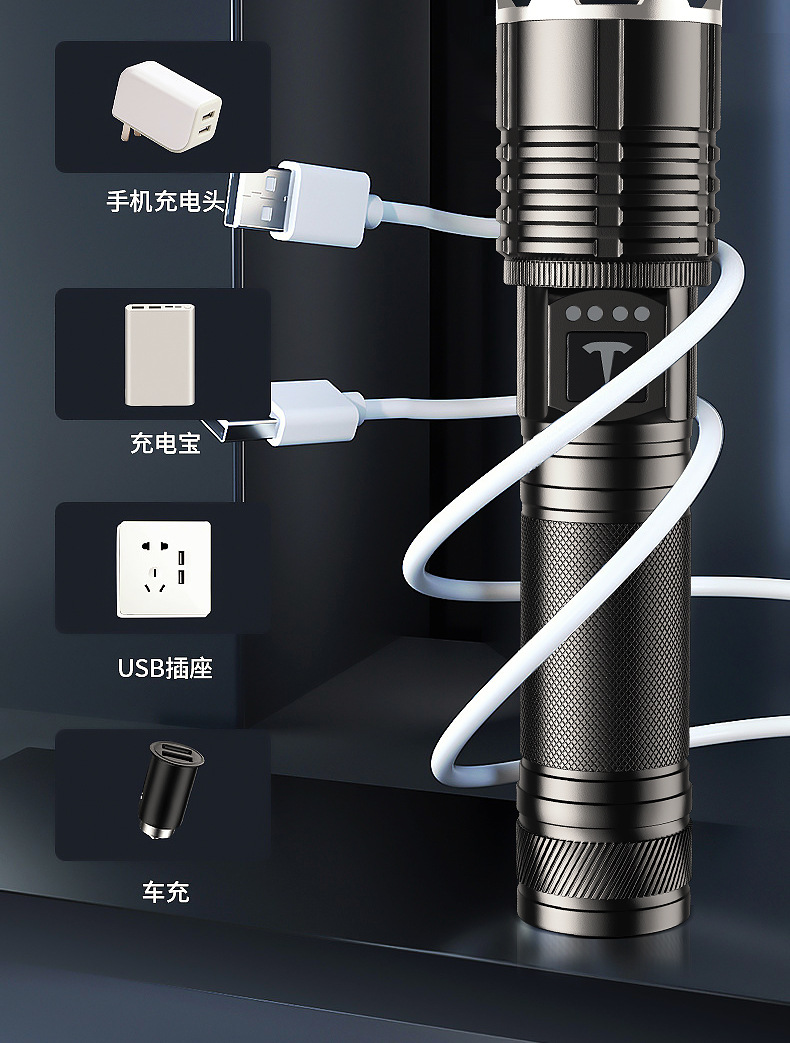 국경 주도 새로운 강한 빛 손전등 전기 디스플레이 usb 충전 모바일 충전 Baochang 지구력 야외 손전등 도매