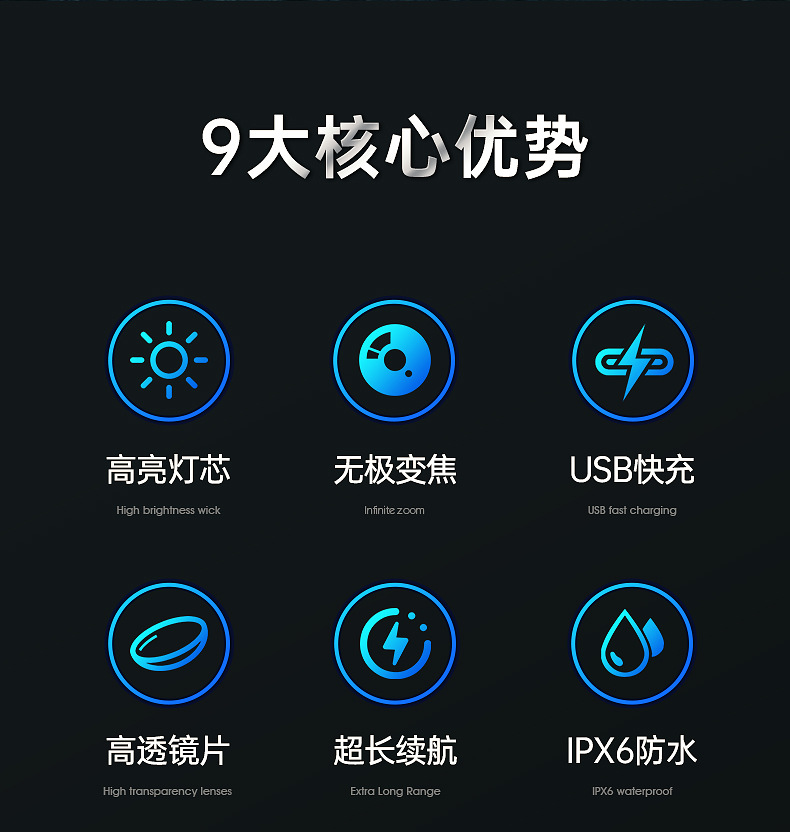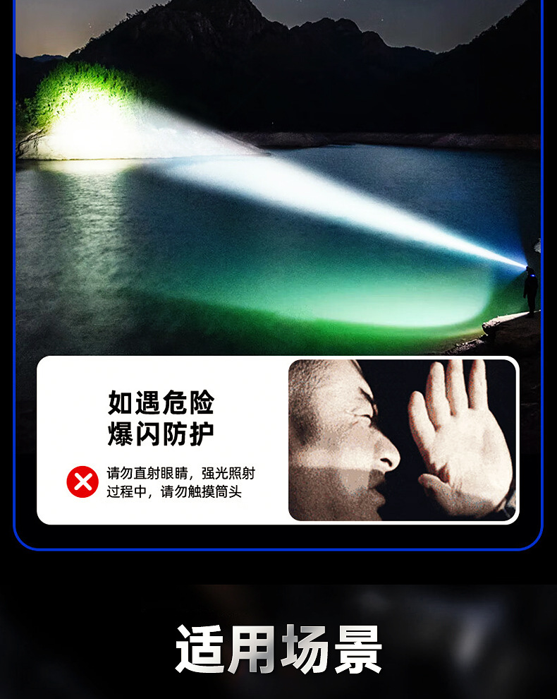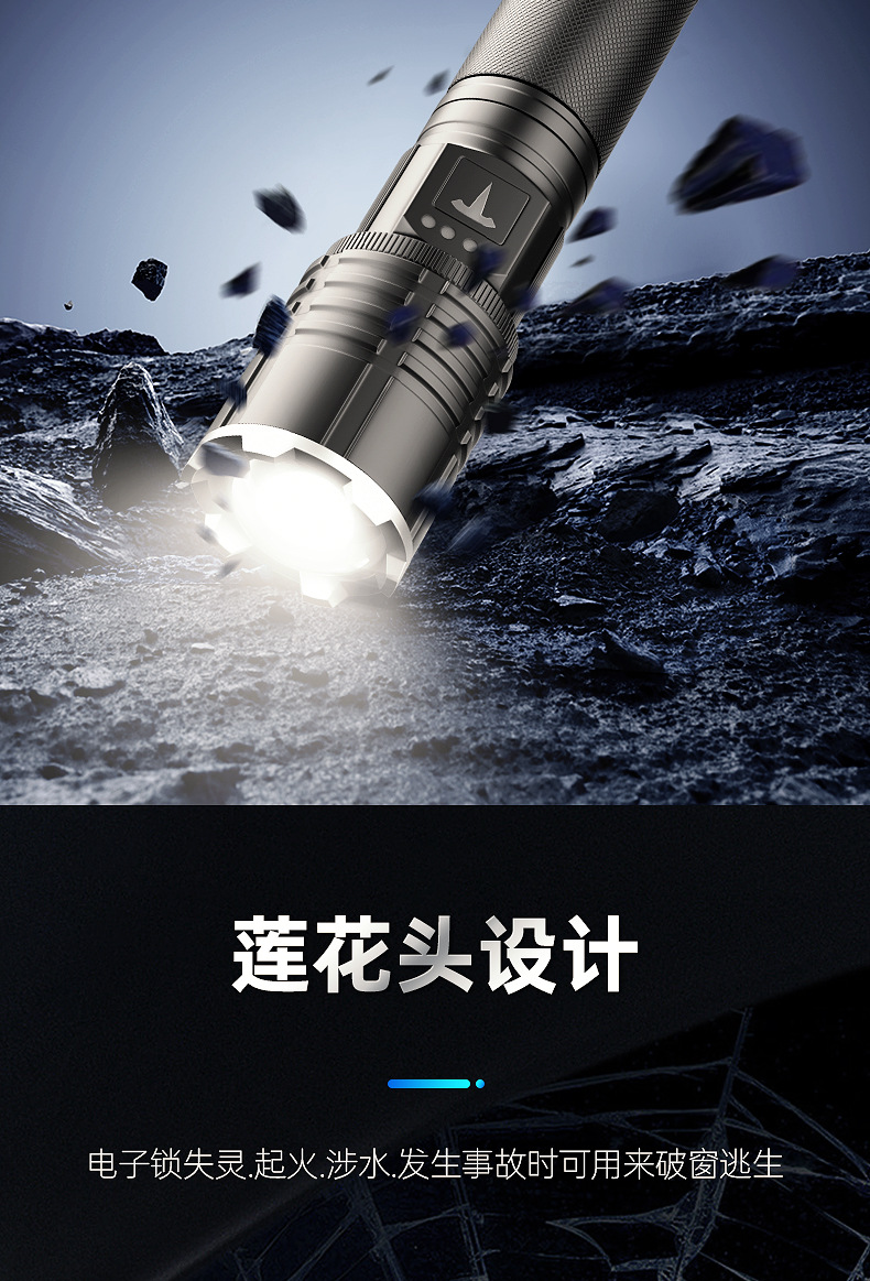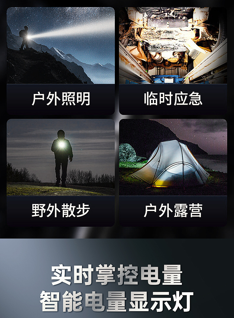 국경 주도 새로운 강한 빛 손전등 전기 디스플레이 usb 충전 모바일 충전 Baochang 지구력 야외 손전등 도매