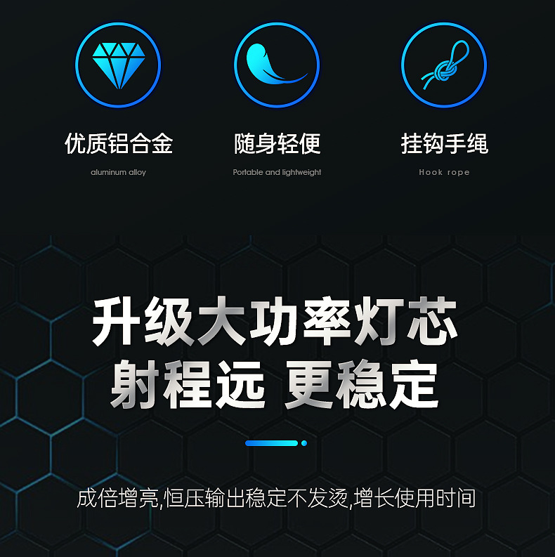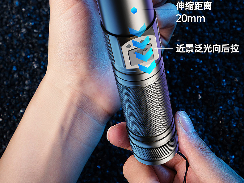 국경 주도 새로운 강한 빛 손전등 전기 디스플레이 usb 충전 모바일 충전 Baochang 지구력 야외 손전등 도매스토어 가기