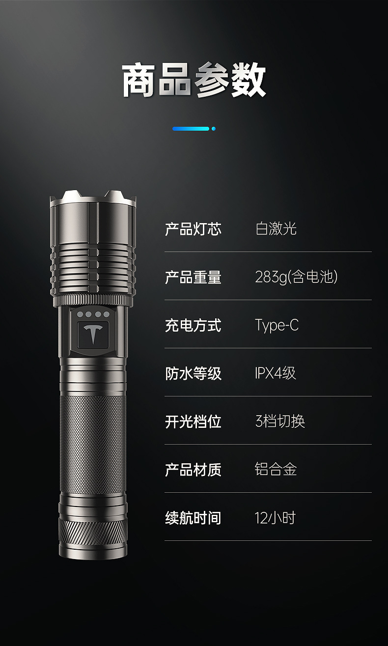 • A88 백색 레이저 손전등 [18650 배터리]]