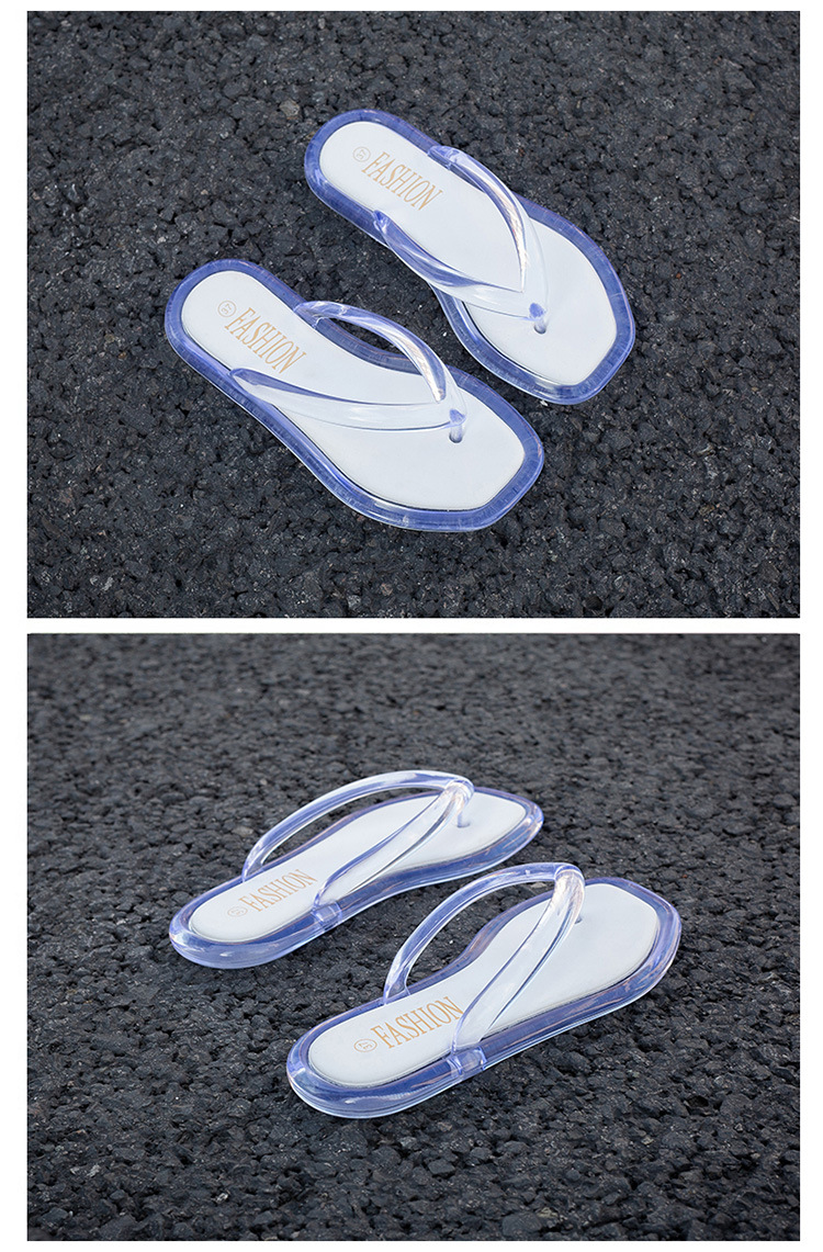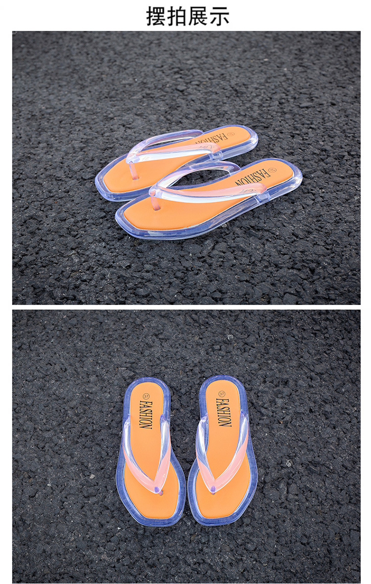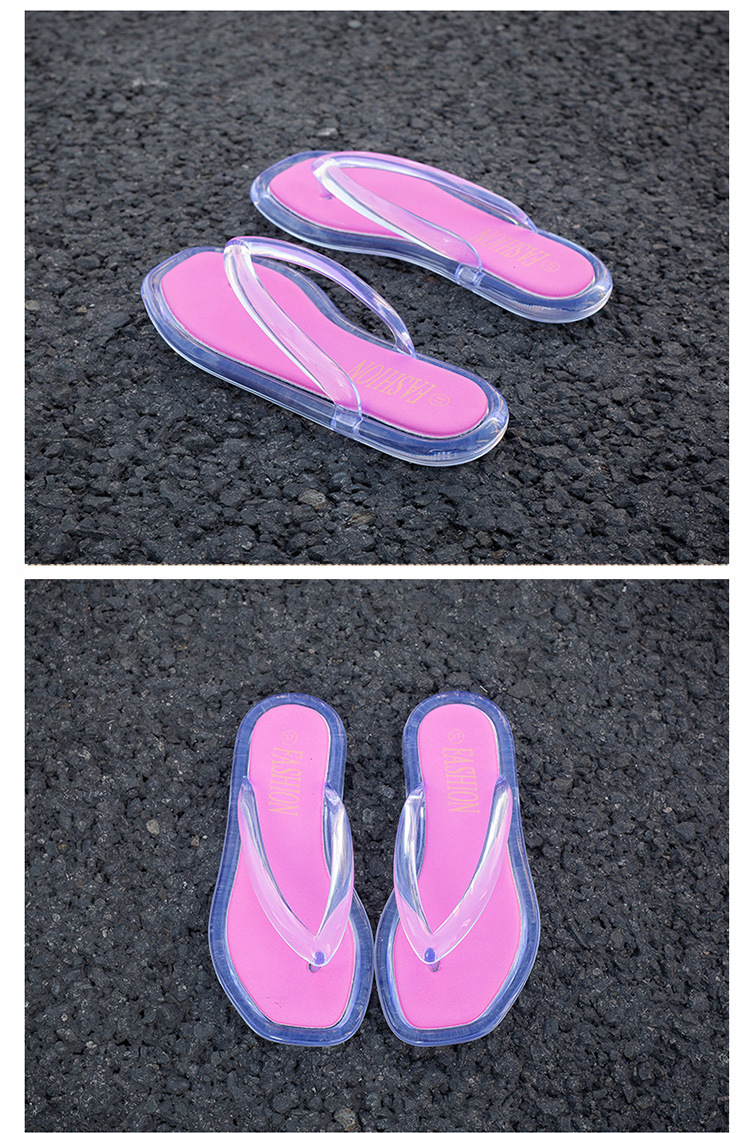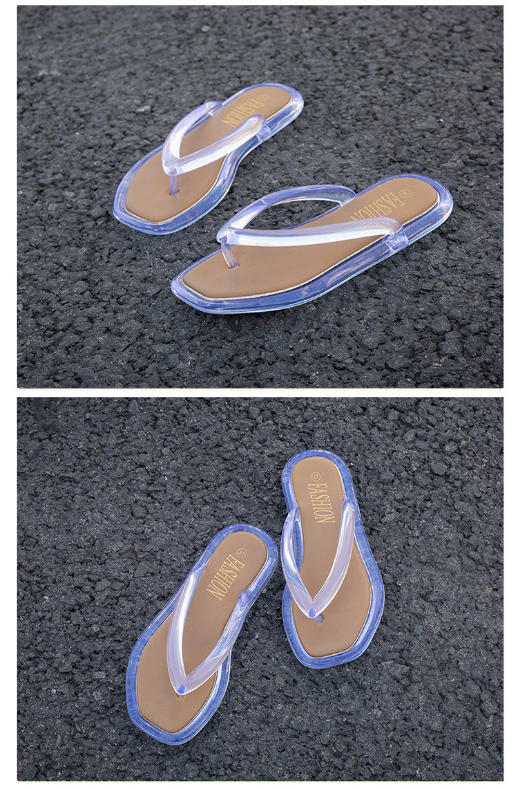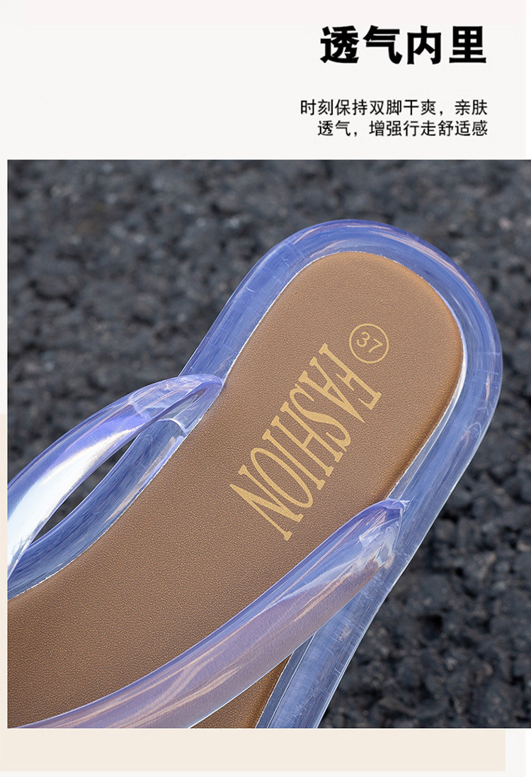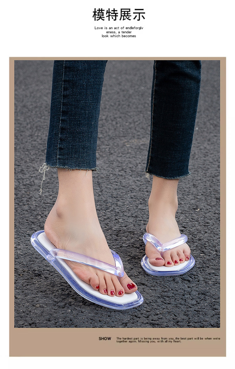 2024 새로운 여성의 여름 플립 플롭 투명 젤리 슈즈 외부 착용 플랫 슬리퍼 비치 슈즈 국경 도매스토어 가기