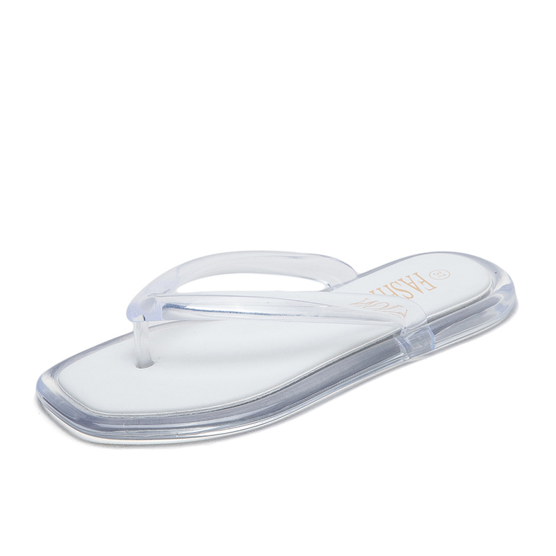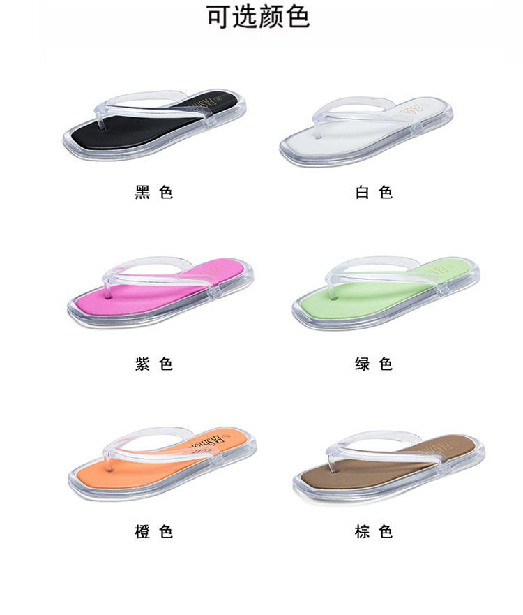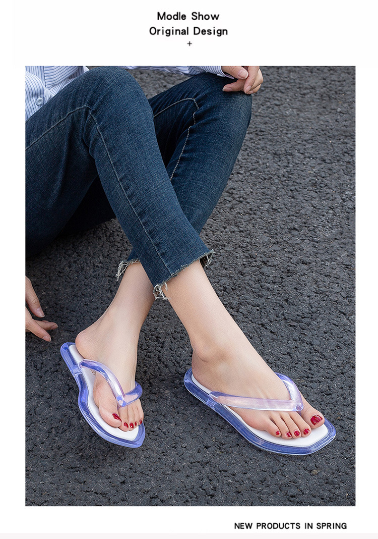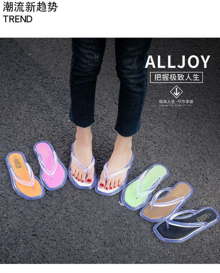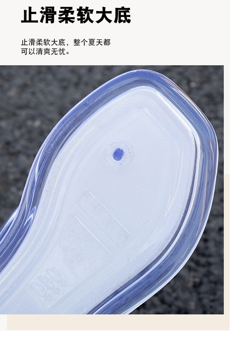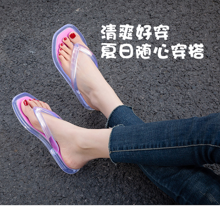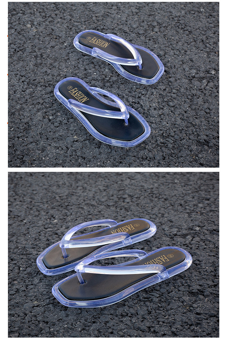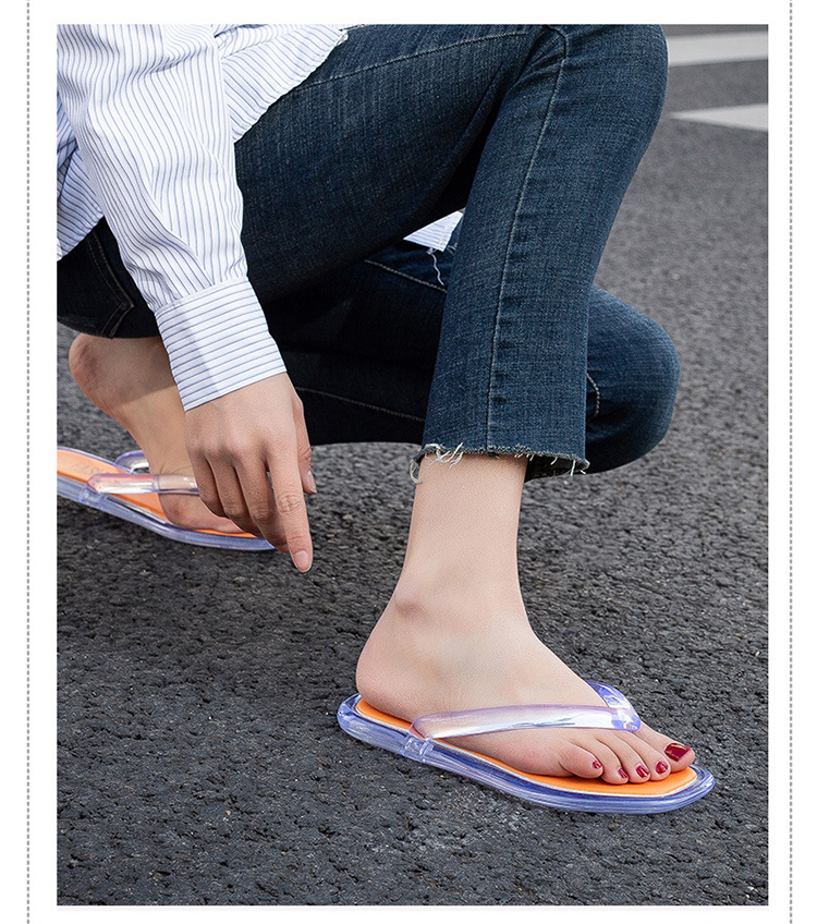 2024 새로운 여성의 여름 플립 플롭 투명 젤리 슈즈 외부 착용 플랫 슬리퍼 비치 슈즈 국경 도매스토어 가기