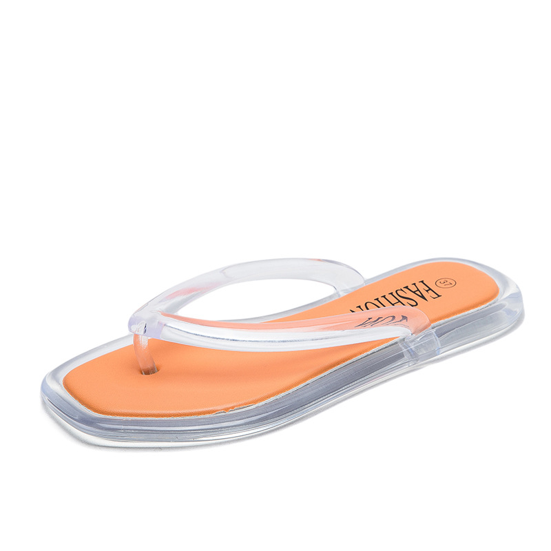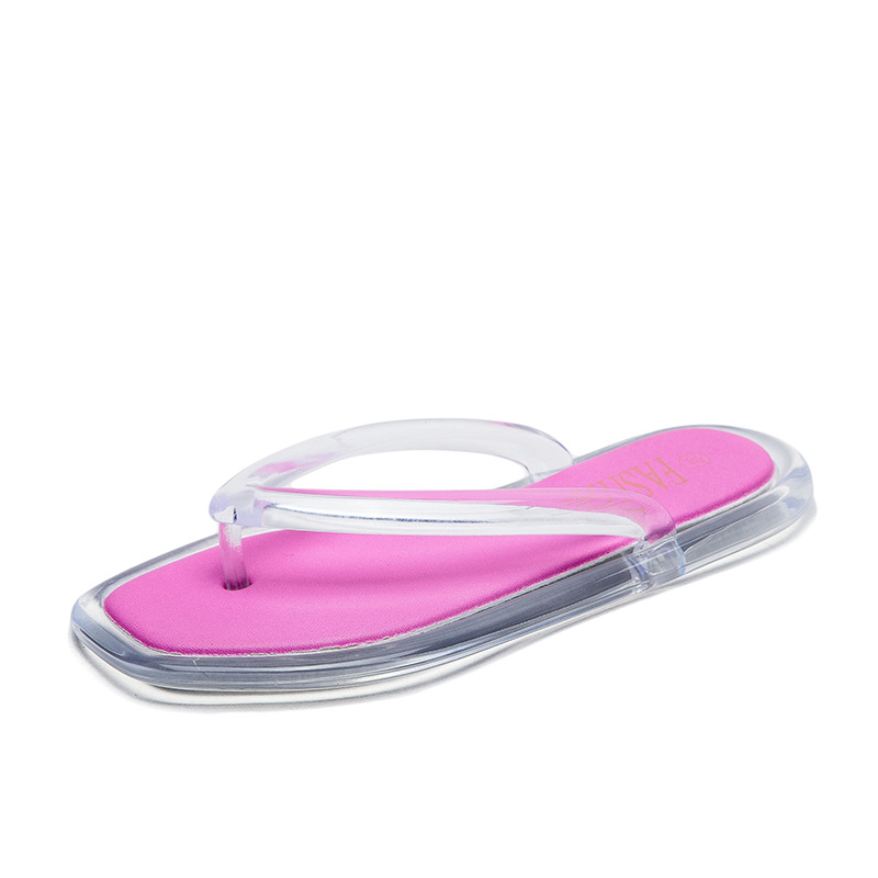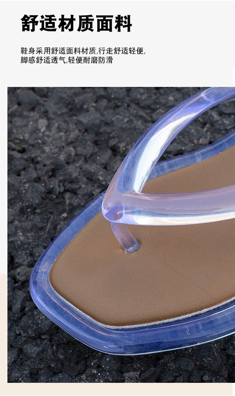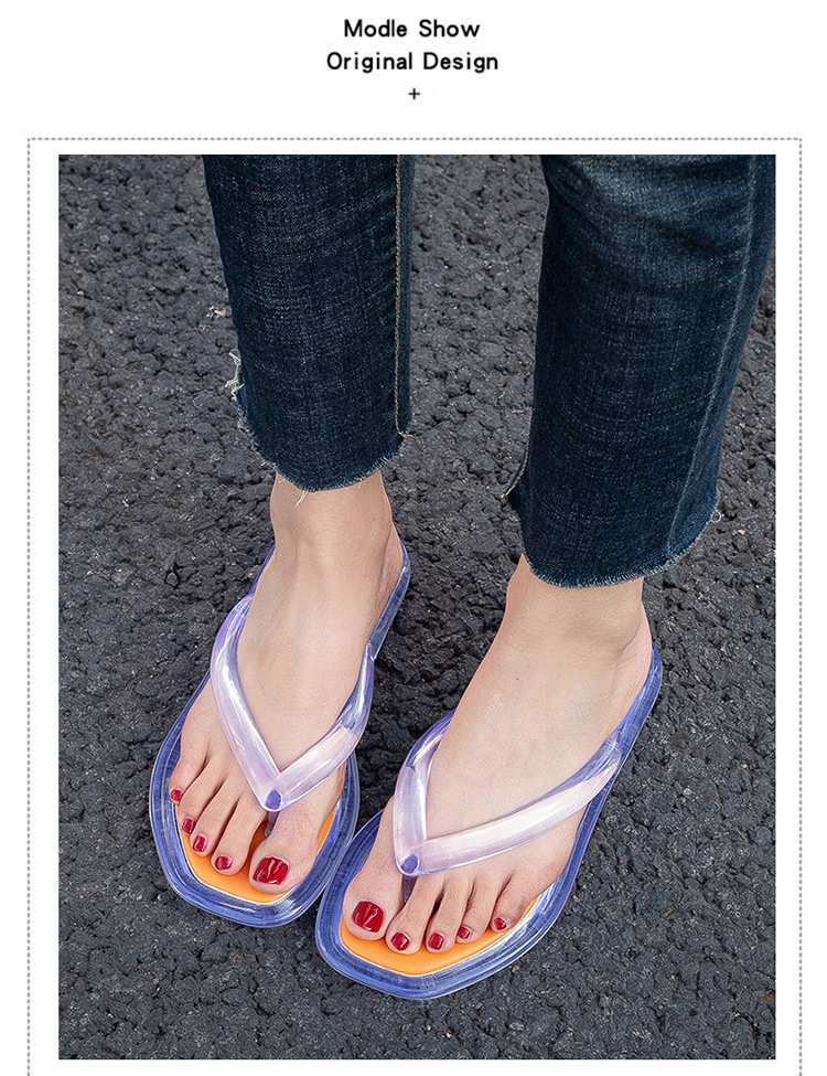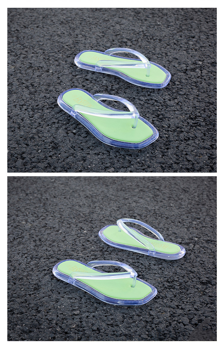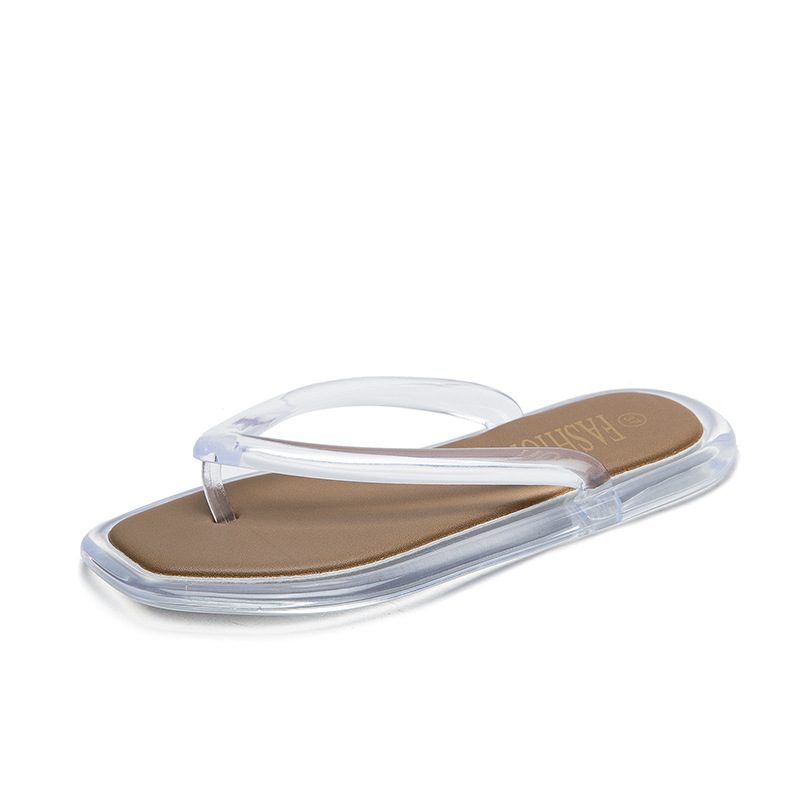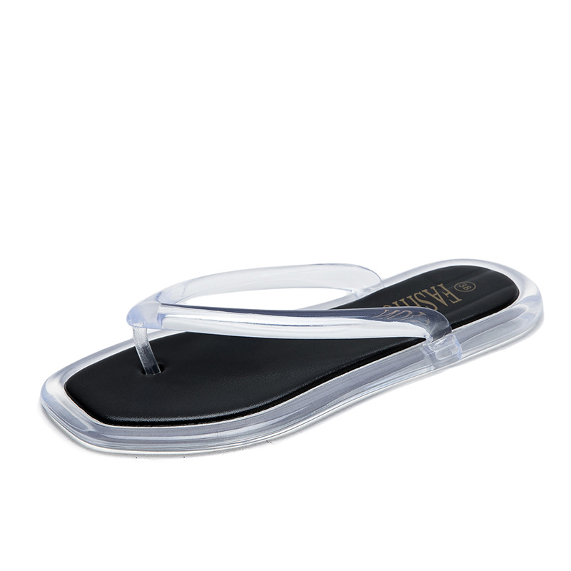 2024 새로운 여성의 여름 플립 플롭 투명 젤리 슈즈 외부 착용 플랫 슬리퍼 비치 슈즈 국경 도매스토어 가기