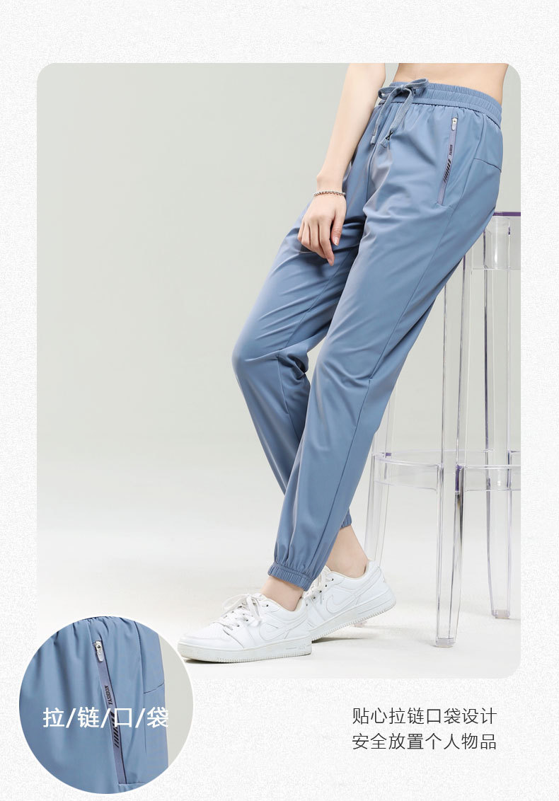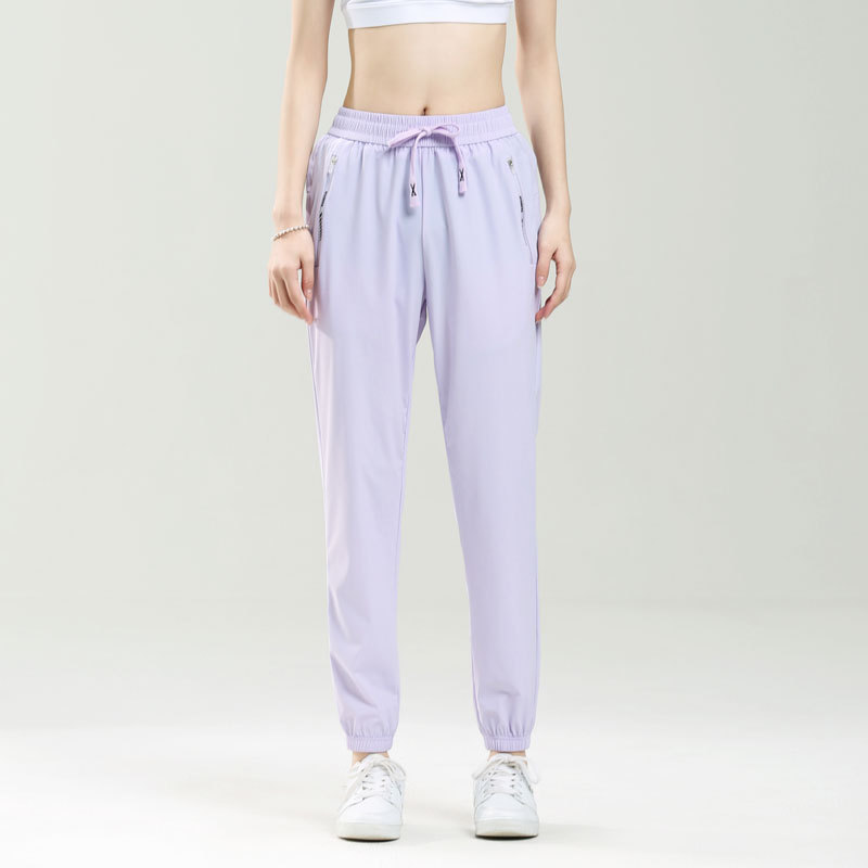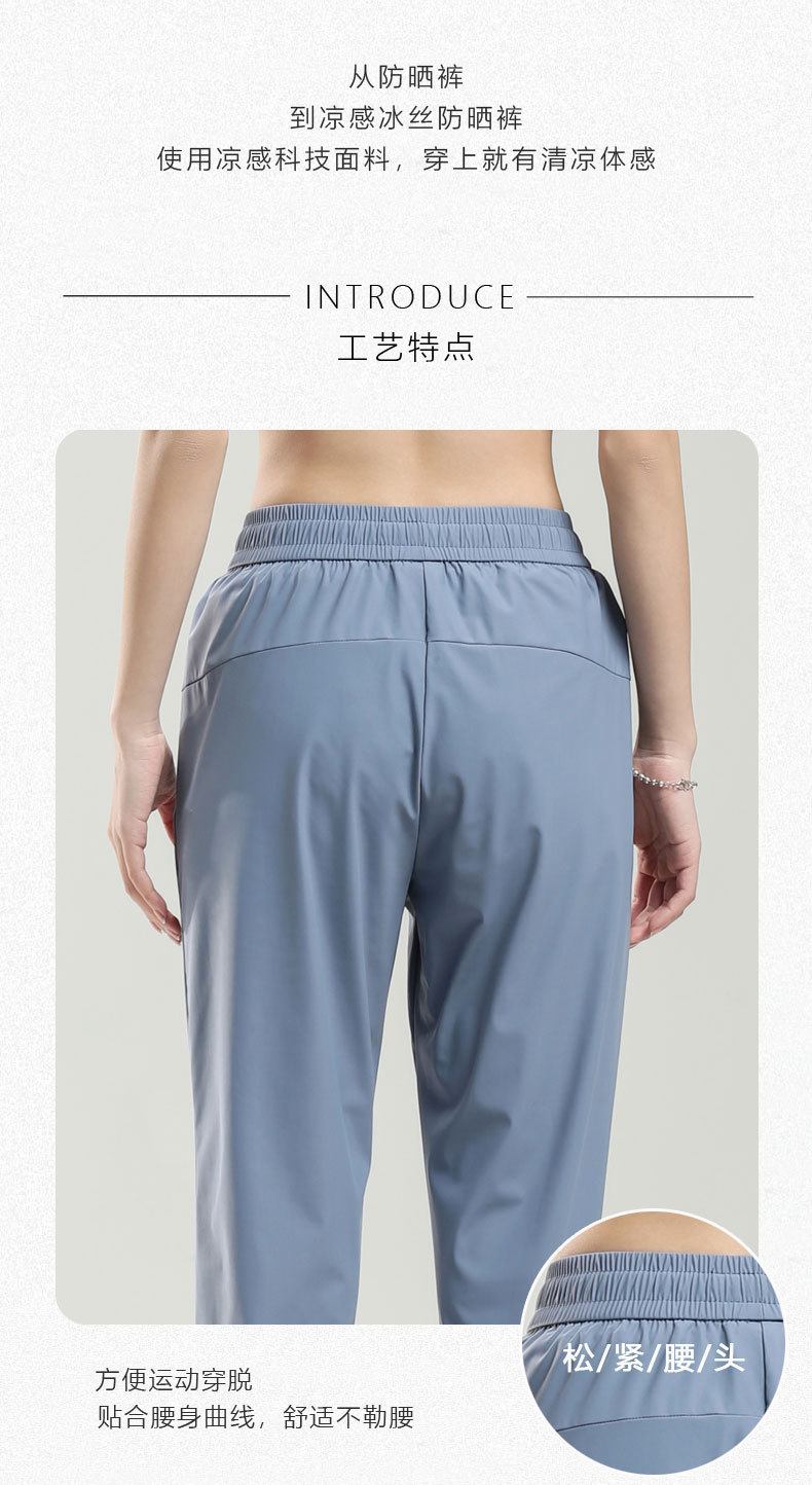 아이스 실크 스포츠 바지 여성 여름 얇은 빠른 건조 바지 캐주얼 발목 묶인 바지 요가 옷 피트니스 태양 보호 러닝 팬츠 도매