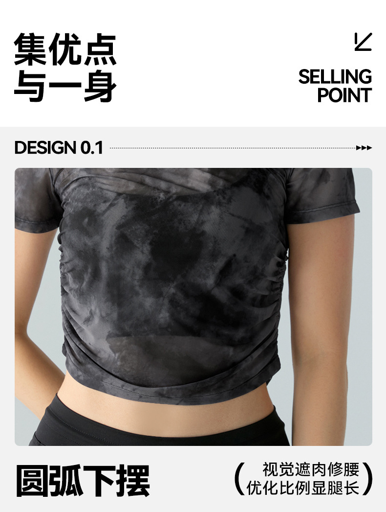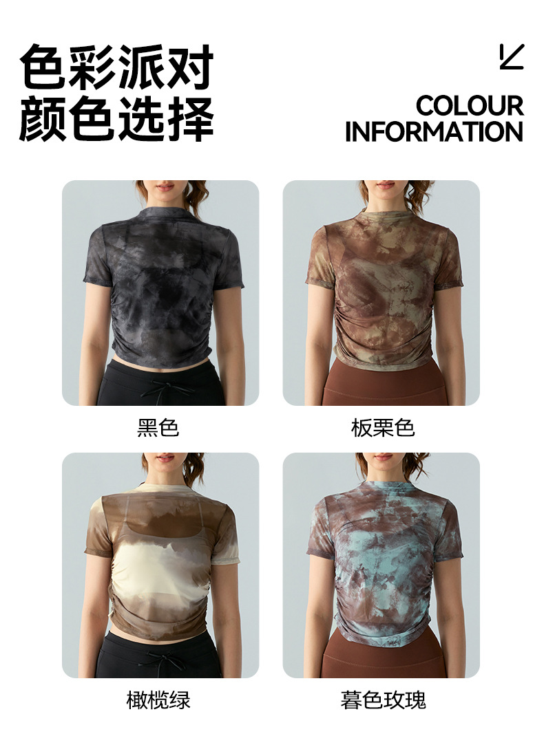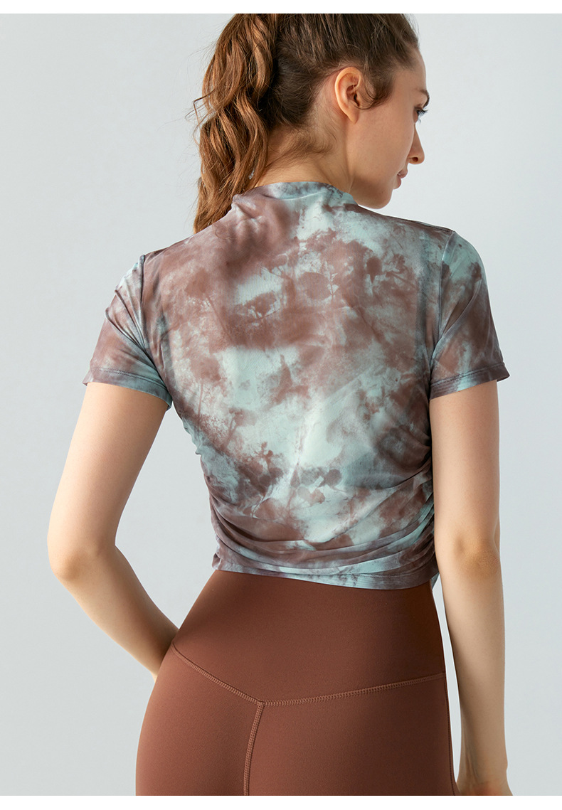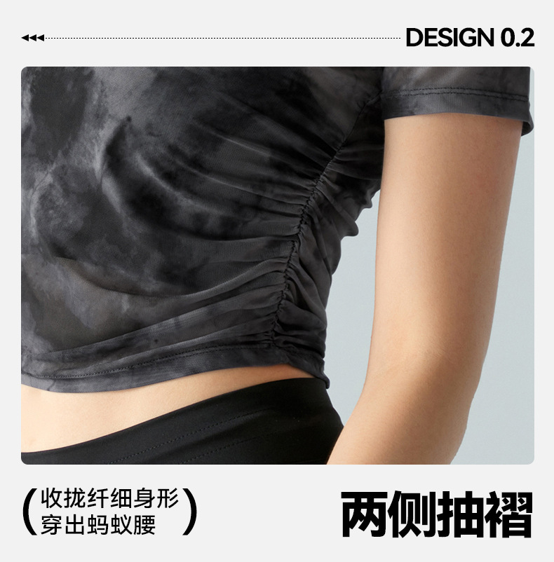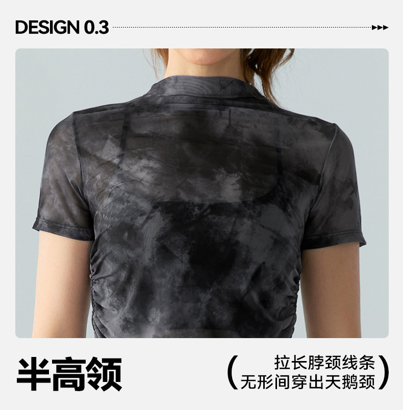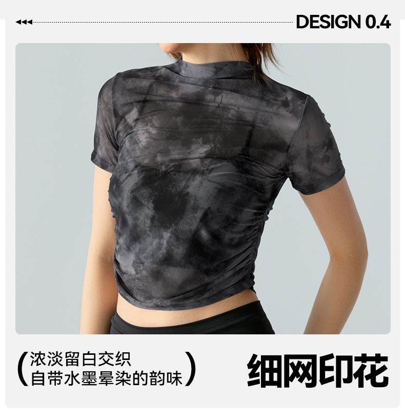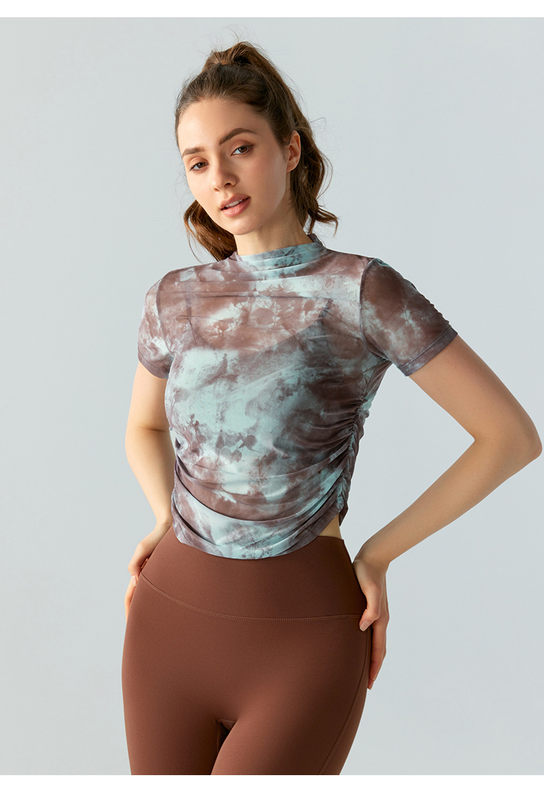 인쇄 된 메쉬 스포츠 최고 여성의 새로운 섹시한 통기성 요가 옷 블라우스 주름 슬림 핏 피트니스 반팔 티셔츠스토어 가기