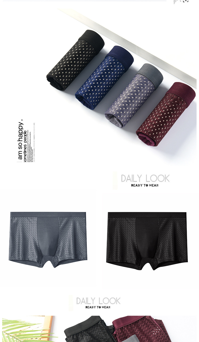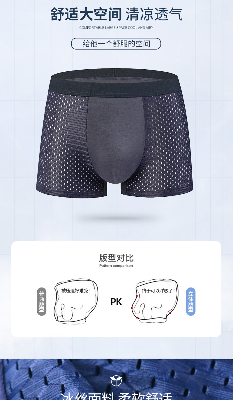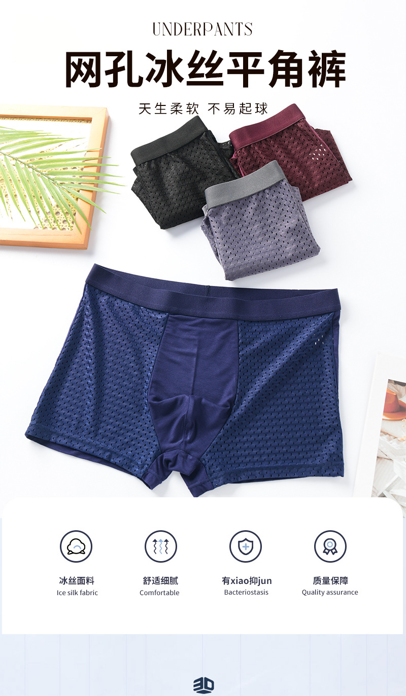 남성용 아이스 실크 속옷 통기성 남성용 무봉제 미드웨이스트 도매 블랙 사각팬티 반바지 여름 통기성 크로스보더 맞춤 제작스토어 가기