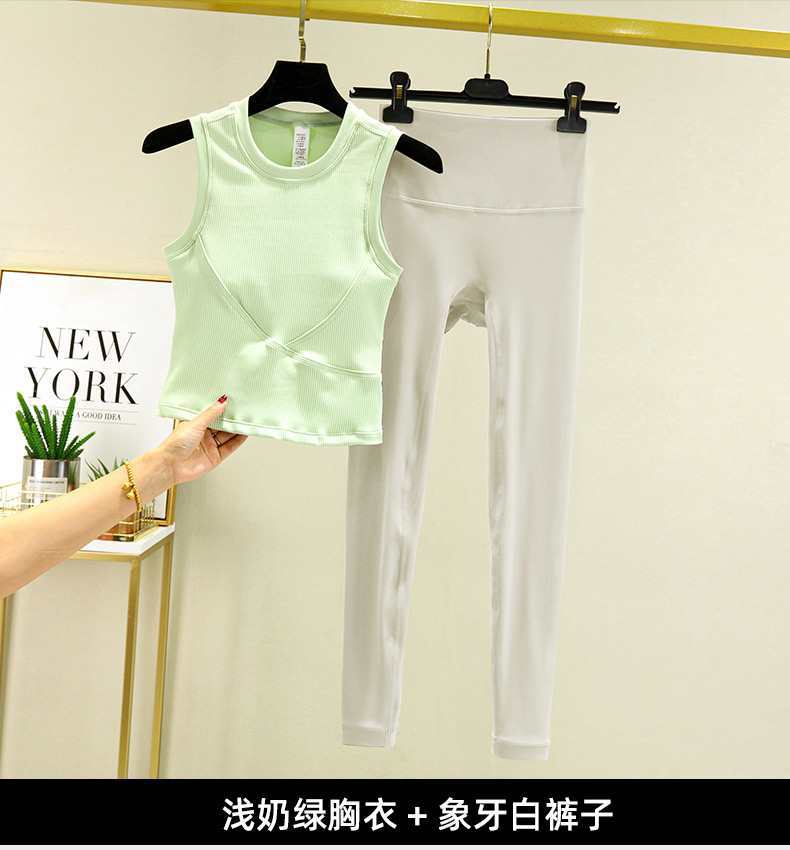전문 요가 의류 세트 여성 봄과 여름 긴 조끼 체육관 스포츠 아침 달리기 의류 가슴 패드스토어 가기