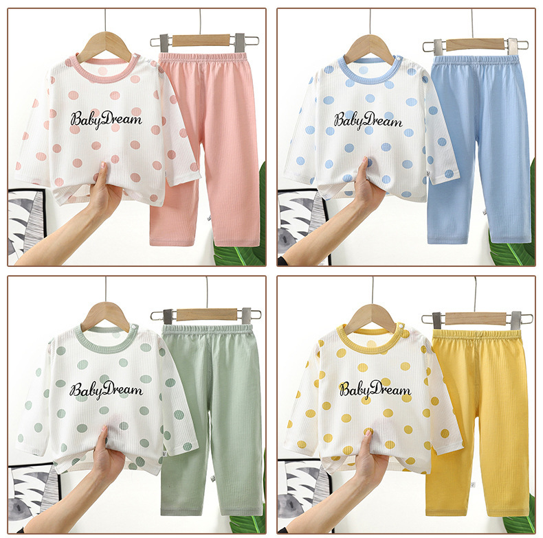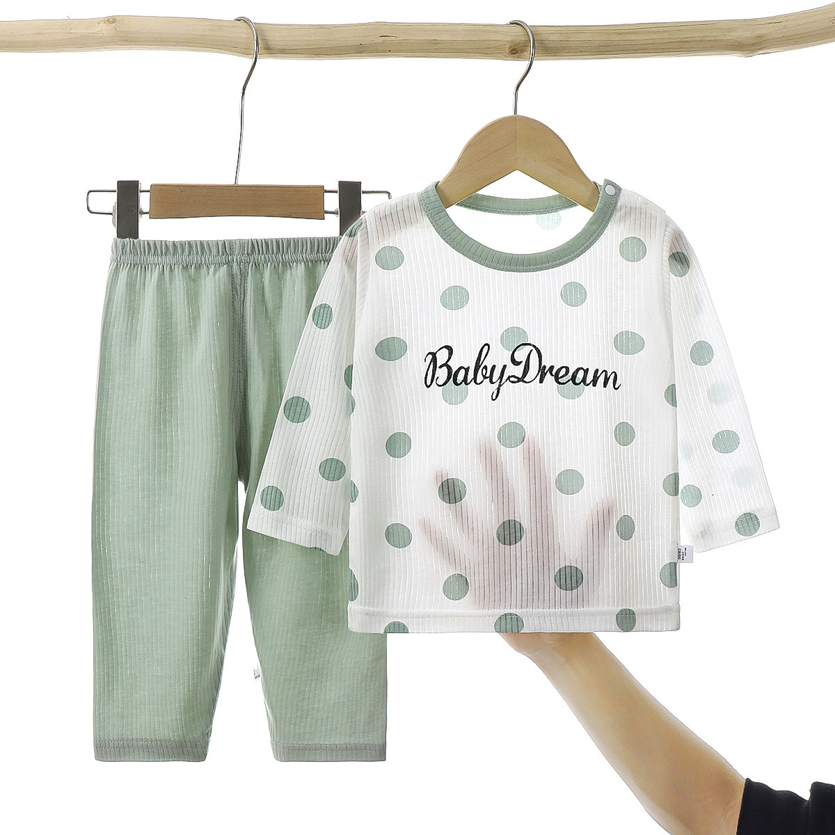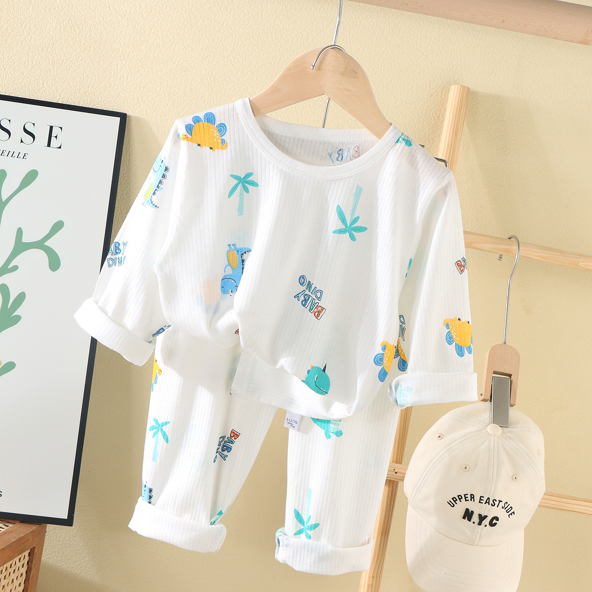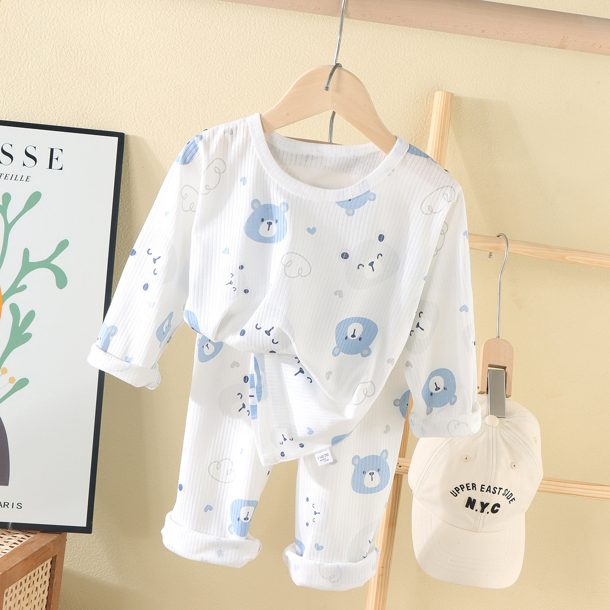 어린이 잠옷 순면 아기 얇은 한국 스타일 자른 남학생 홈 착용 중간 및 큰 어린이 소녀 긴 소매 세트 속옷