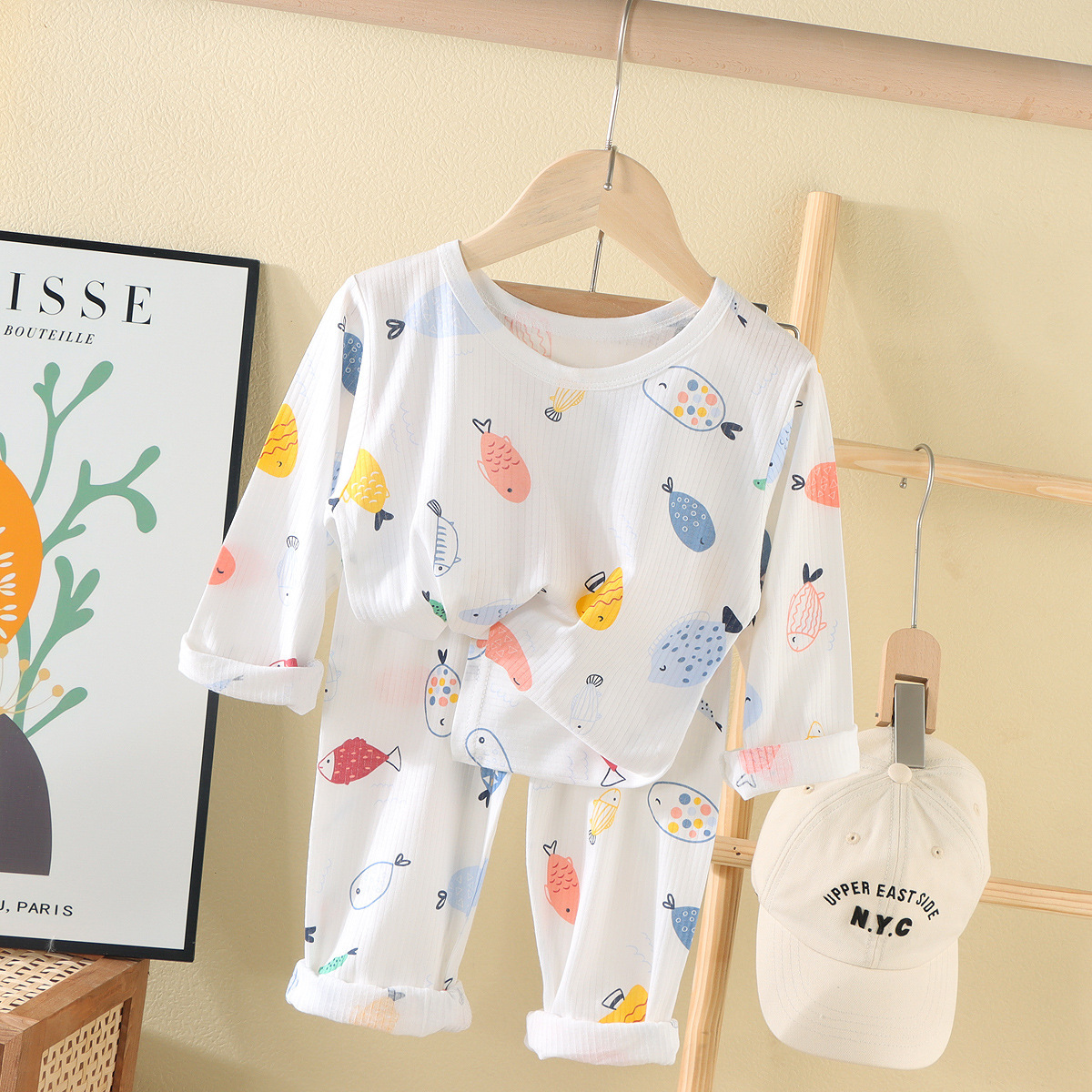 어린이 잠옷 순면 아기 얇은 한국 스타일 자른 남학생 홈 착용 중간 및 큰 어린이 소녀 긴 소매 세트 속옷스토어 가기