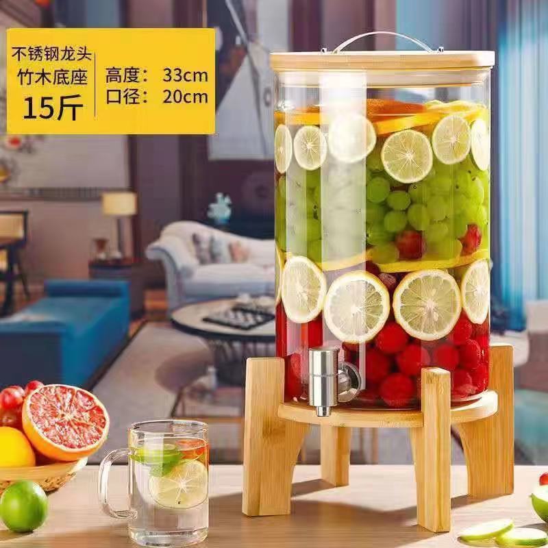 수도꼭지 차가운 주전자 주전자 레몬 차 주스 배럴 대용량 고온 저항 냉장고 가정용 유리 와인 배럴