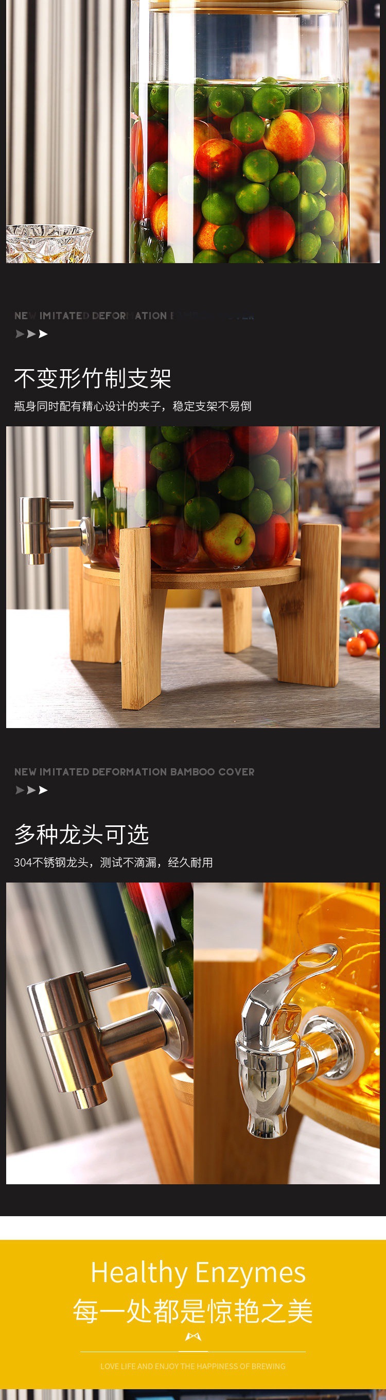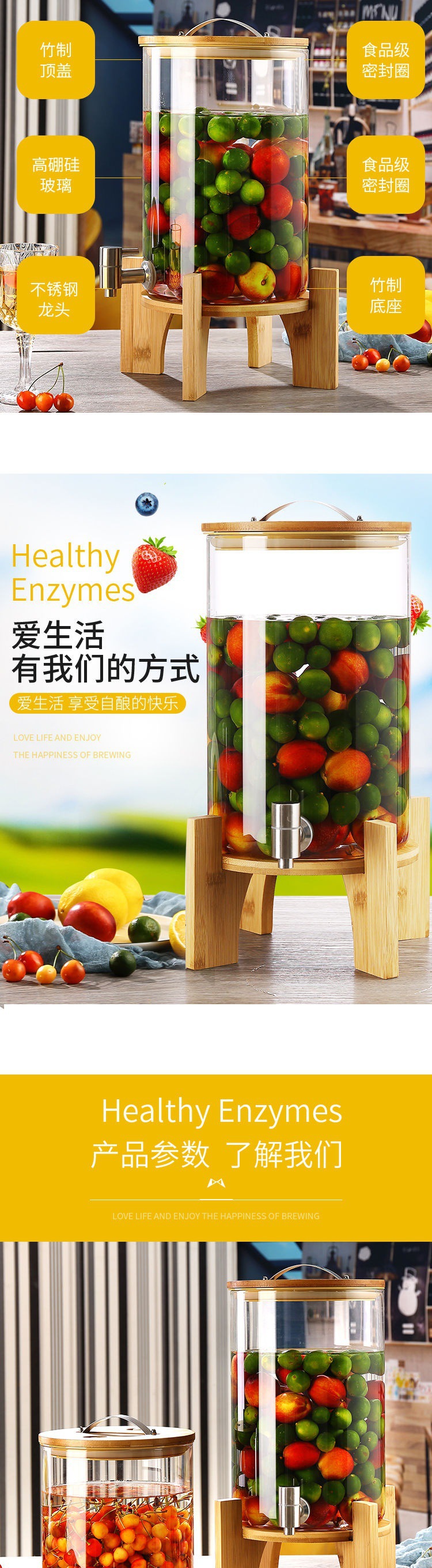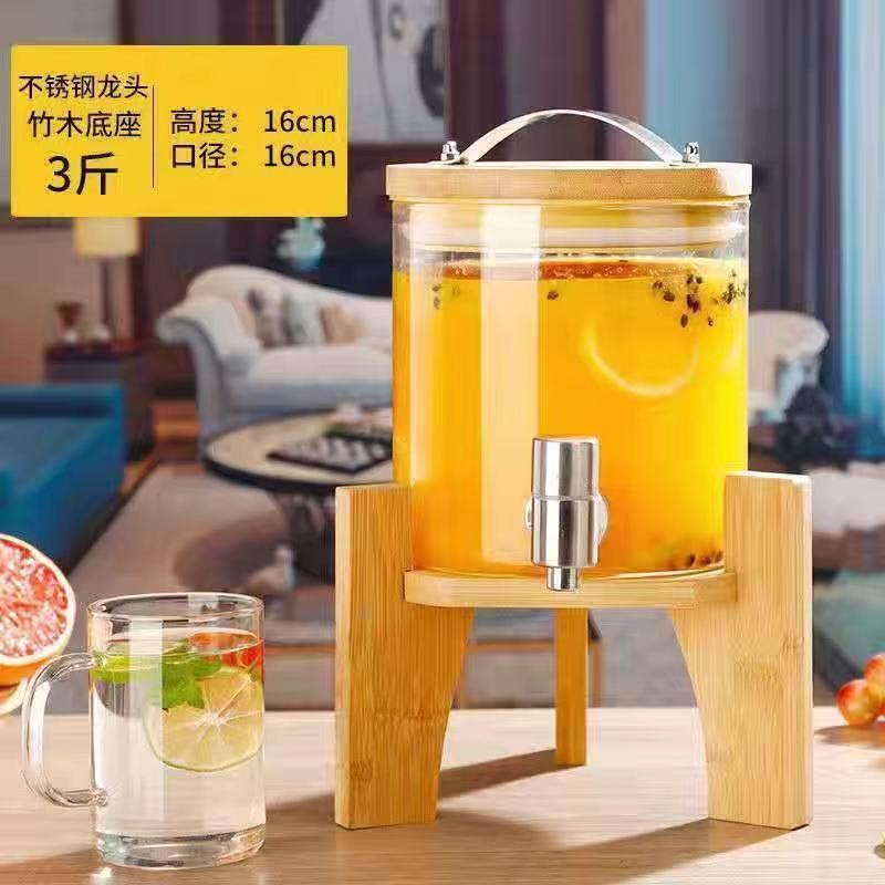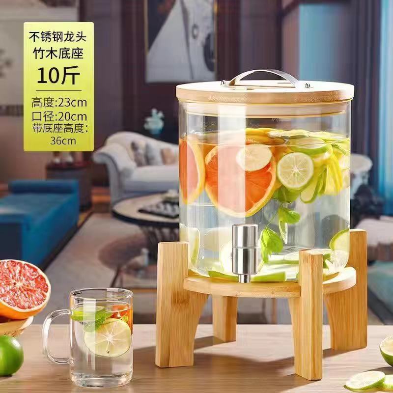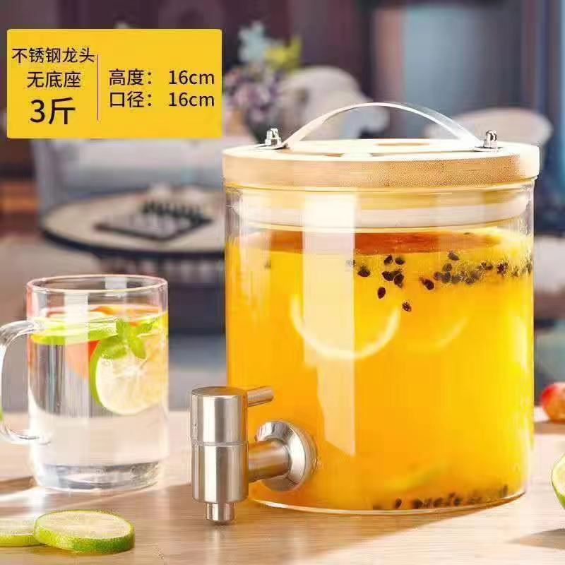 수도꼭지 차가운 주전자 주전자 레몬 차 주스 배럴 대용량 고온 저항 냉장고 가정용 유리 와인 배럴스토어 가기