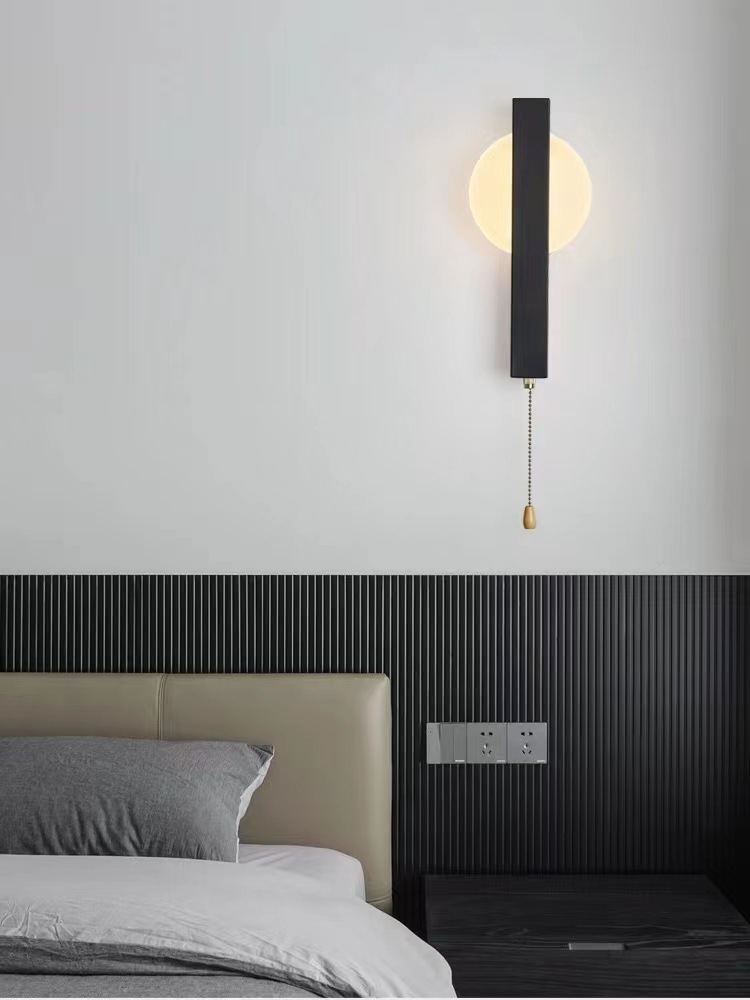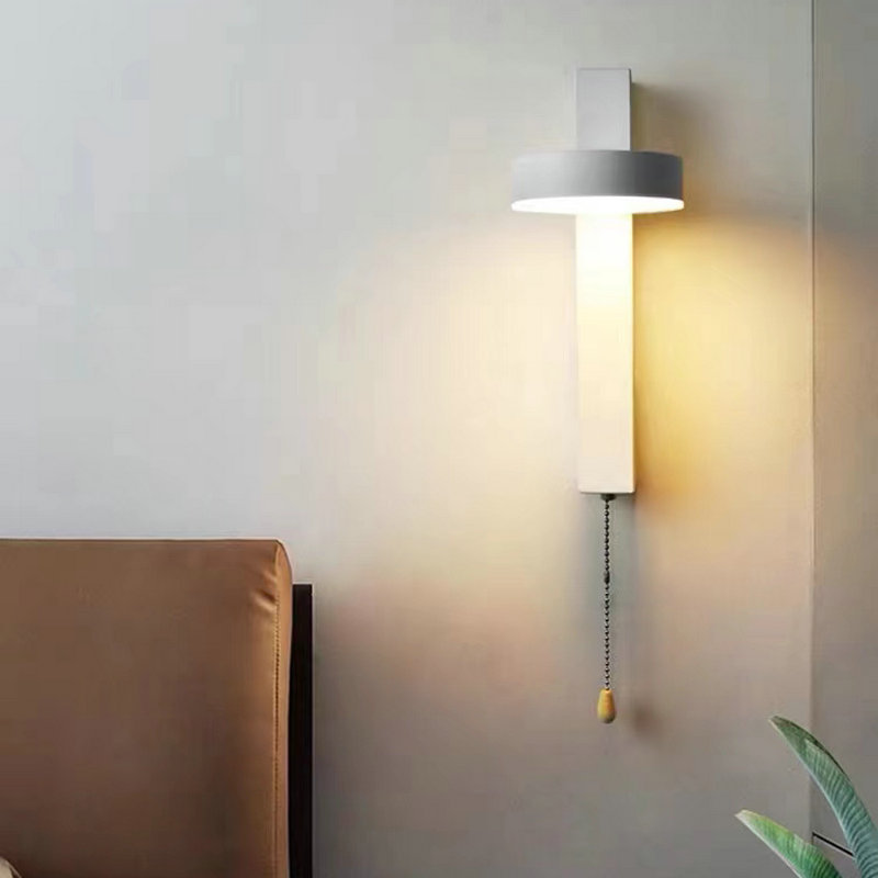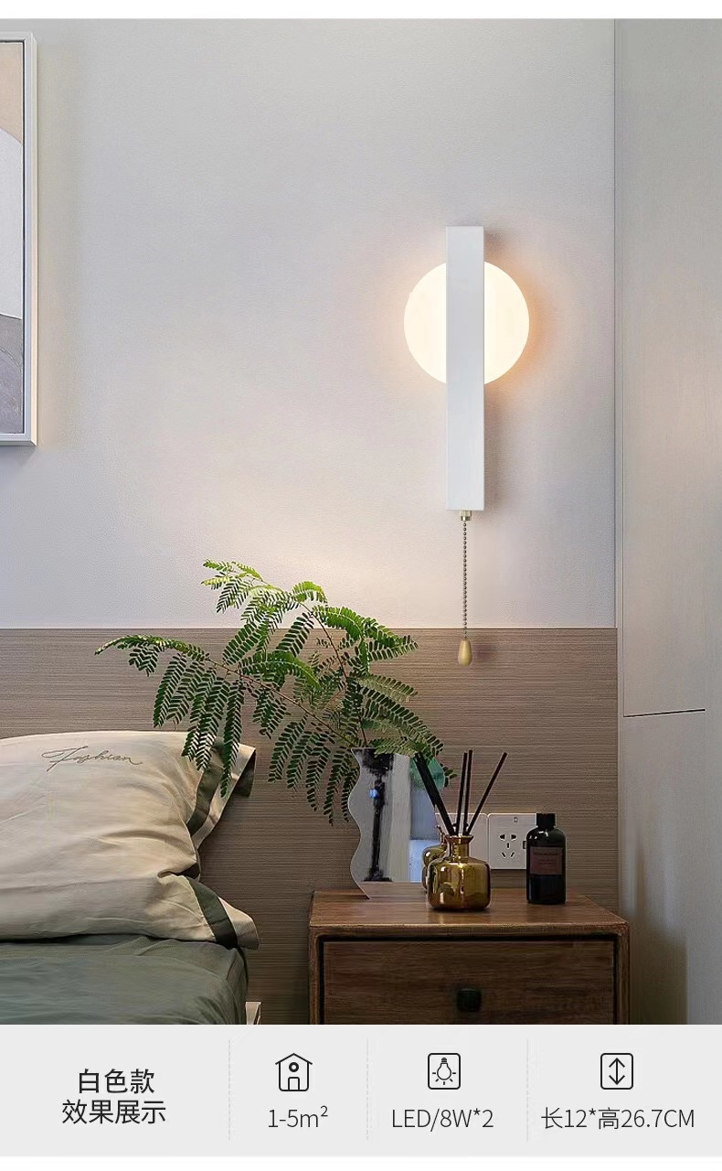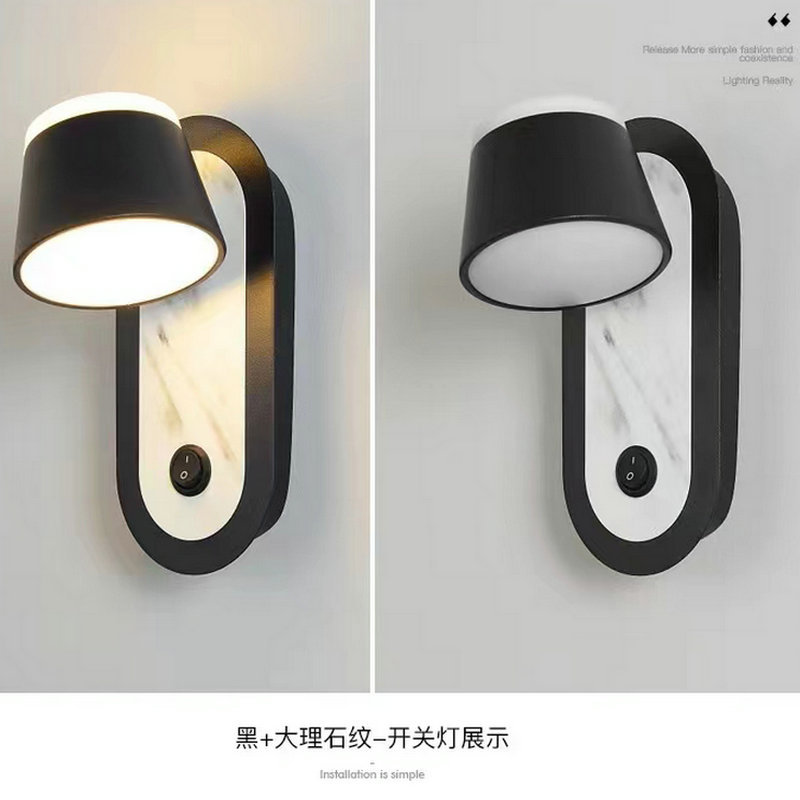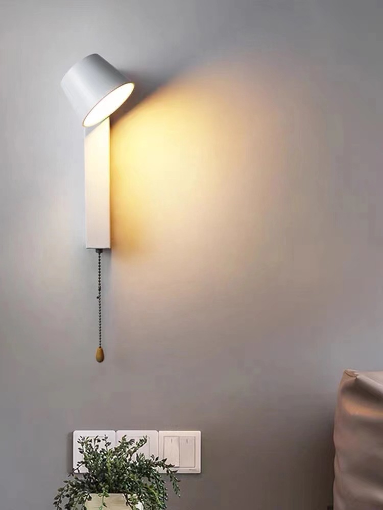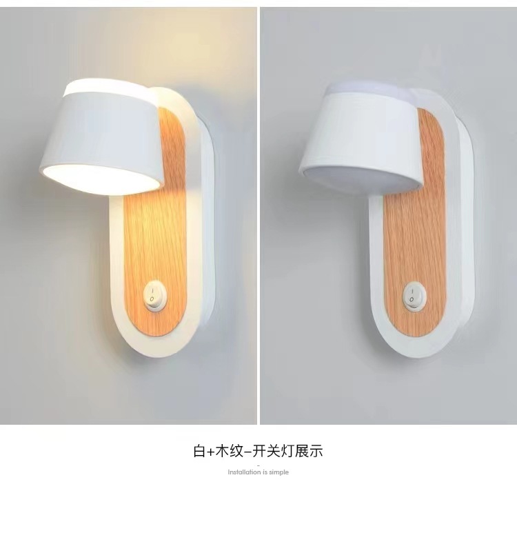 현대적인 미니멀 한 실내 나뭇결 컬러 벽 램프 스위치 침대 옆 독서 램프 연구 거실 TV 벽 통로 램프스토어 가기