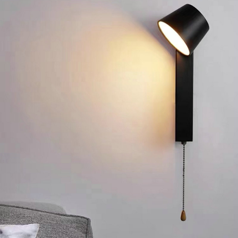 현대적인 미니멀 한 실내 나뭇결 컬러 벽 램프 스위치 침대 옆 독서 램프 연구 거실 TV 벽 통로 램프