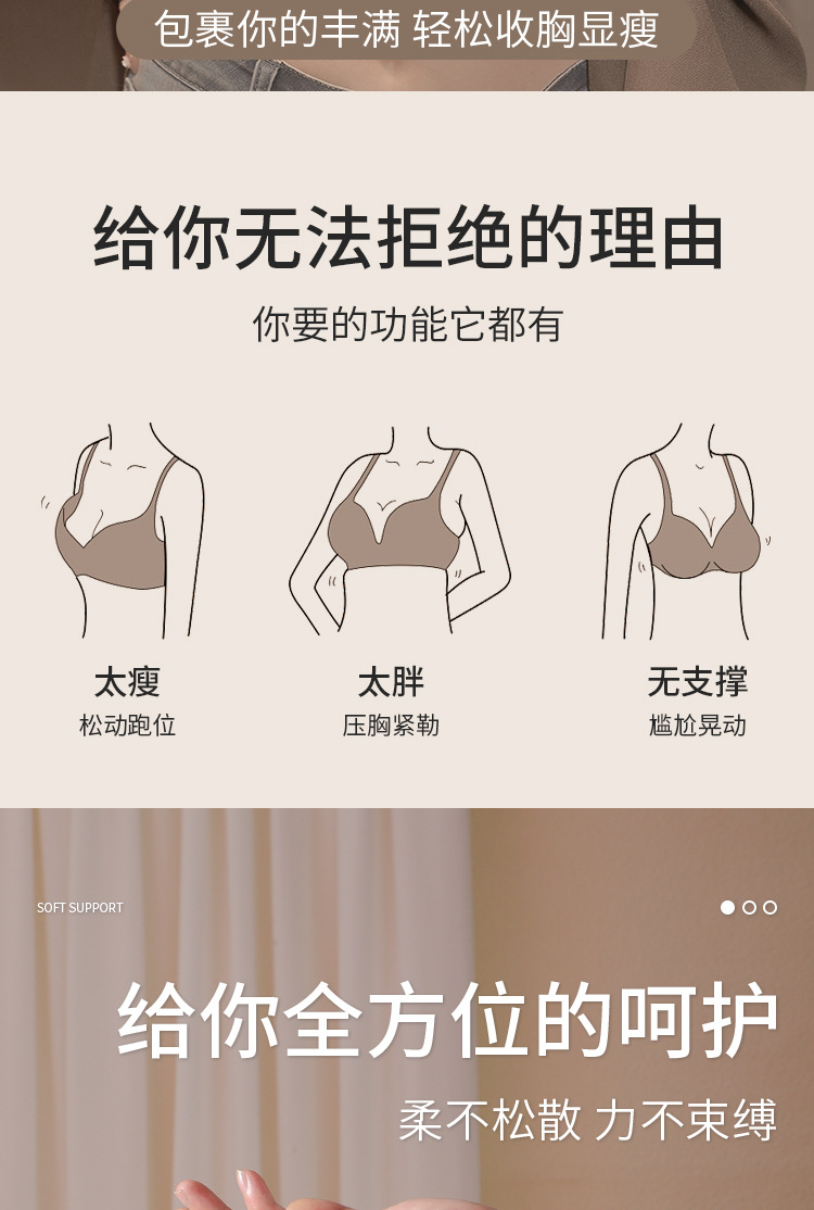 여성용 풀컵 대형 속옷, 얇은 토끼 귀 컵, 흔적 없는 큰 가슴, 작은 가슴, 보조 가슴 축소, 처짐 방지 조절 브라스토어 가기