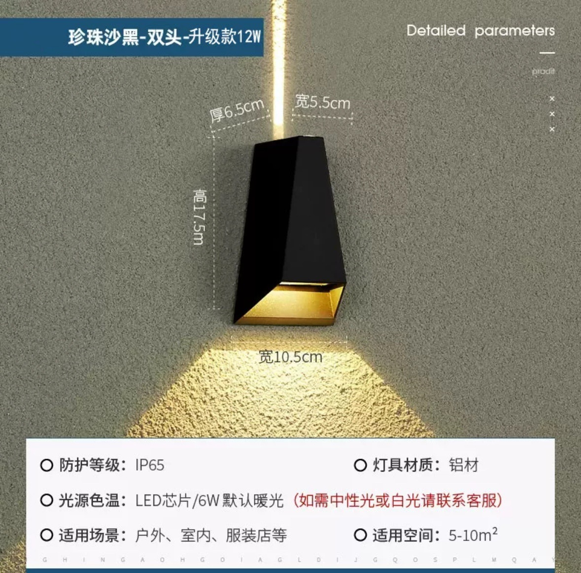 户外壁灯防水室内阳台灯楼梯过道走廊外墙上下射灯庭院别墅洗墙灯