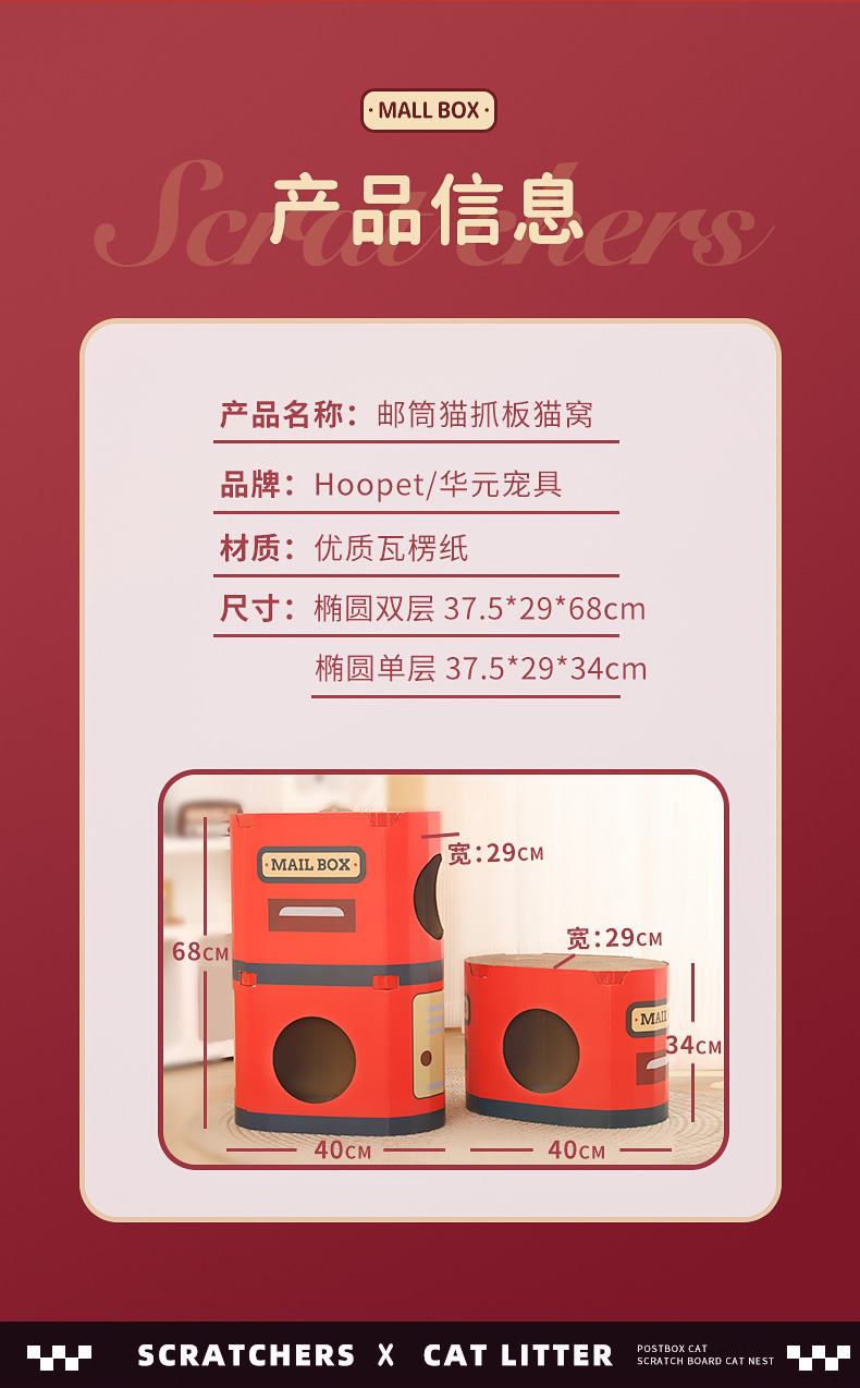 【品名】:HOOPET (邮筒抓板猫窝/椭圆邮筒抓板猫窝)-(单层/双层)