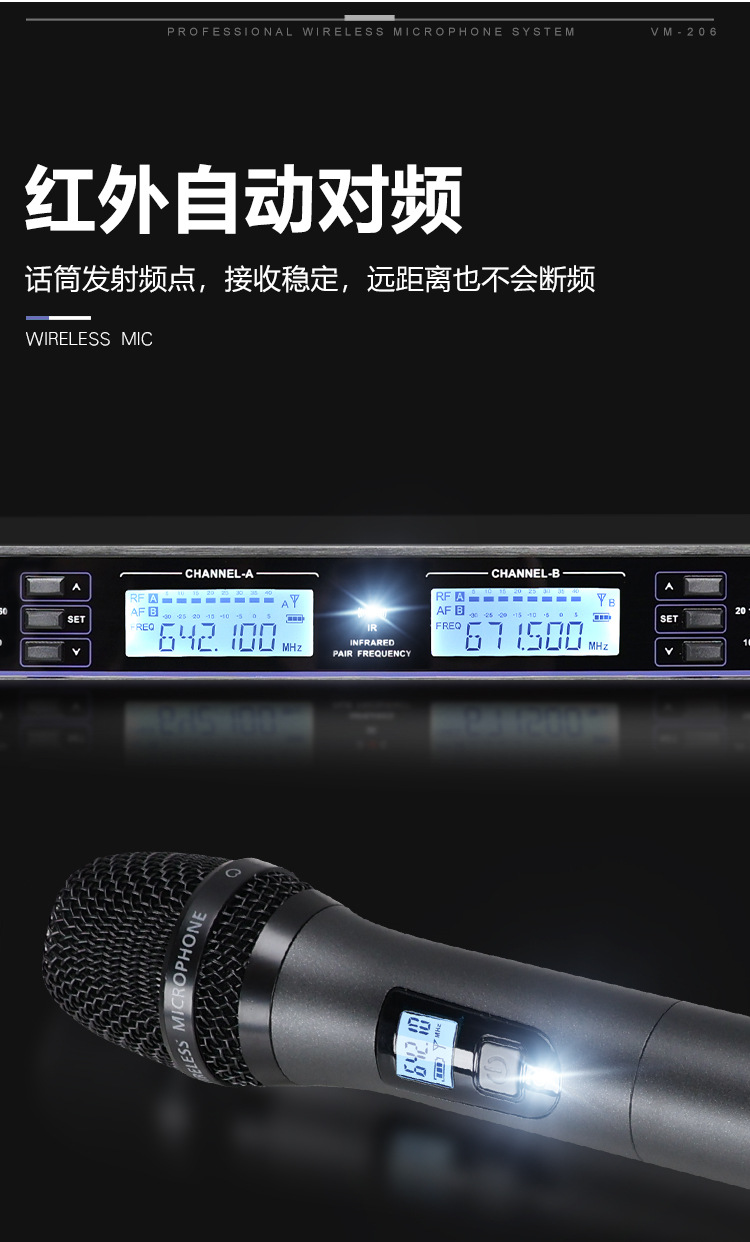KTV 무선 마이크 일대일 금속 핸드 헬드 U 세그먼트 적외선 주파수 매칭 가족 노래방 엔터테인먼트 전문 마이크