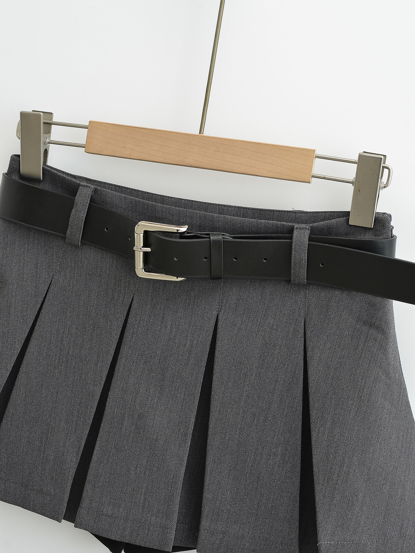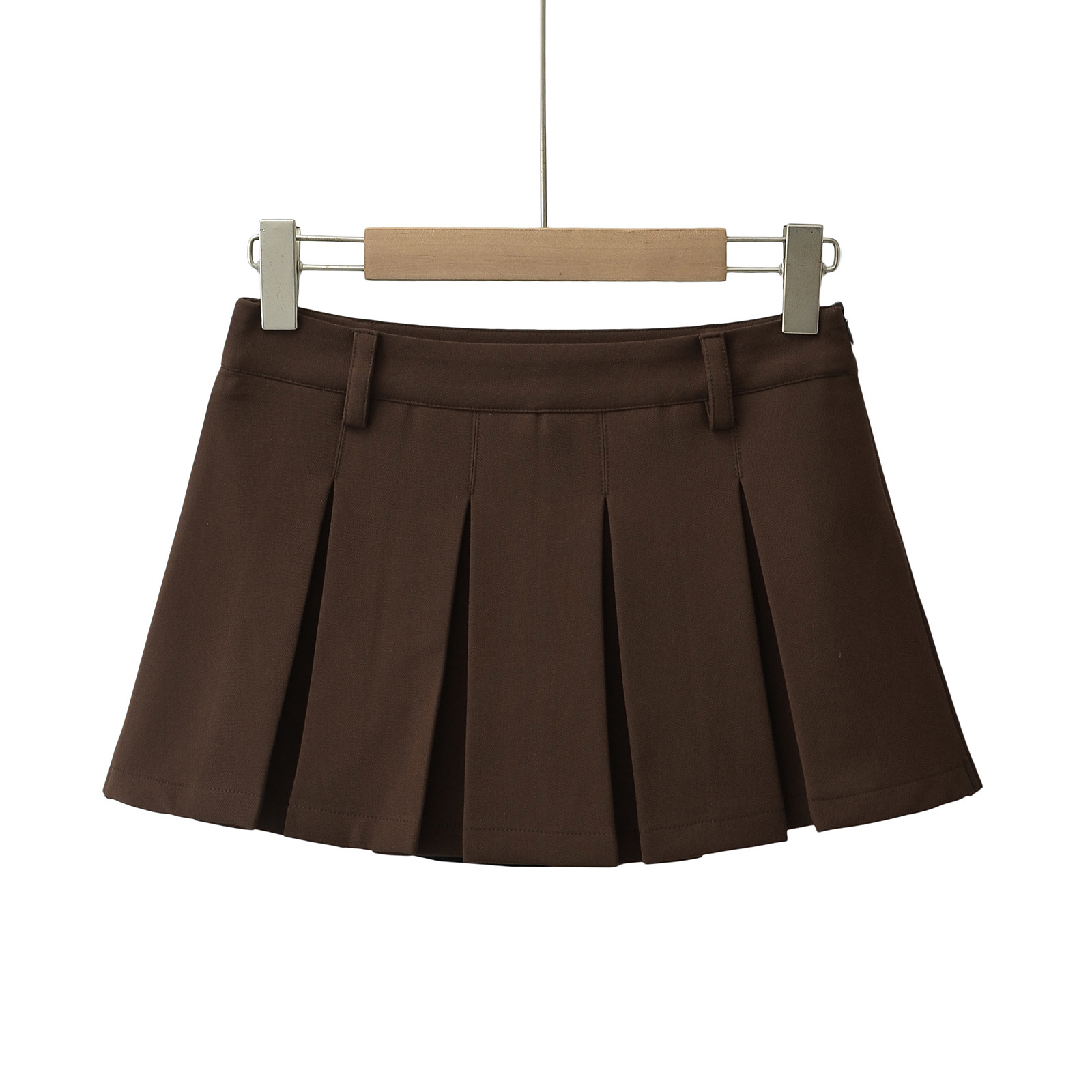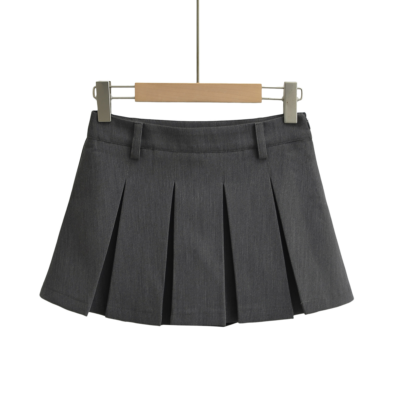 미국 복고풍 스타일의 간단한 올 매치 하이 허리 주름 스커트 울트라 짧은 단색 스커트 안티 노출 프레피 스타일 슬리밍
