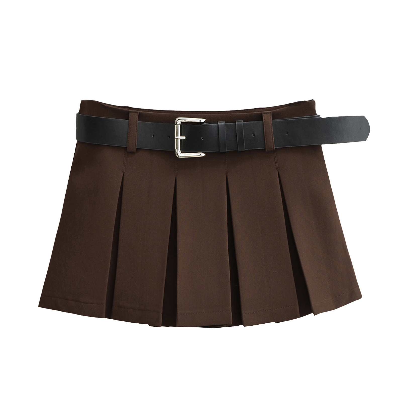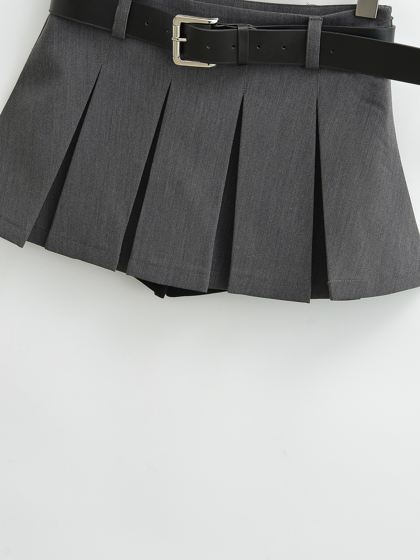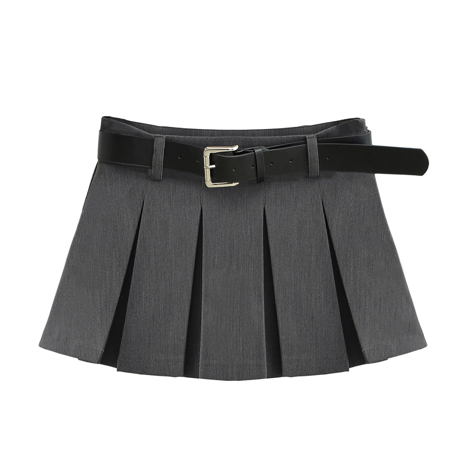 미국 복고풍 스타일의 간단한 올 매치 하이 허리 주름 스커트 울트라 짧은 단색 스커트 안티 노출 프레피 스타일 슬리밍