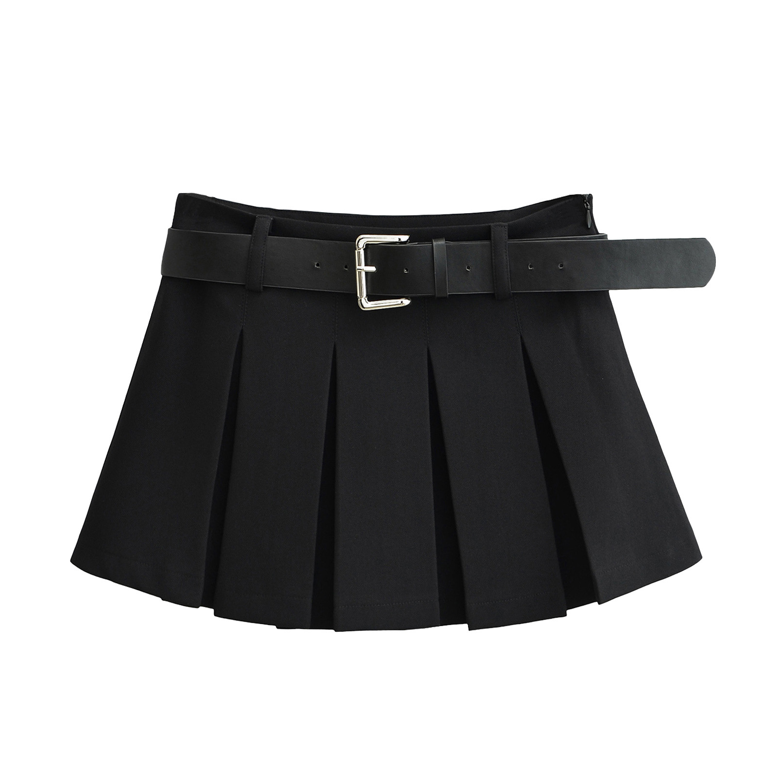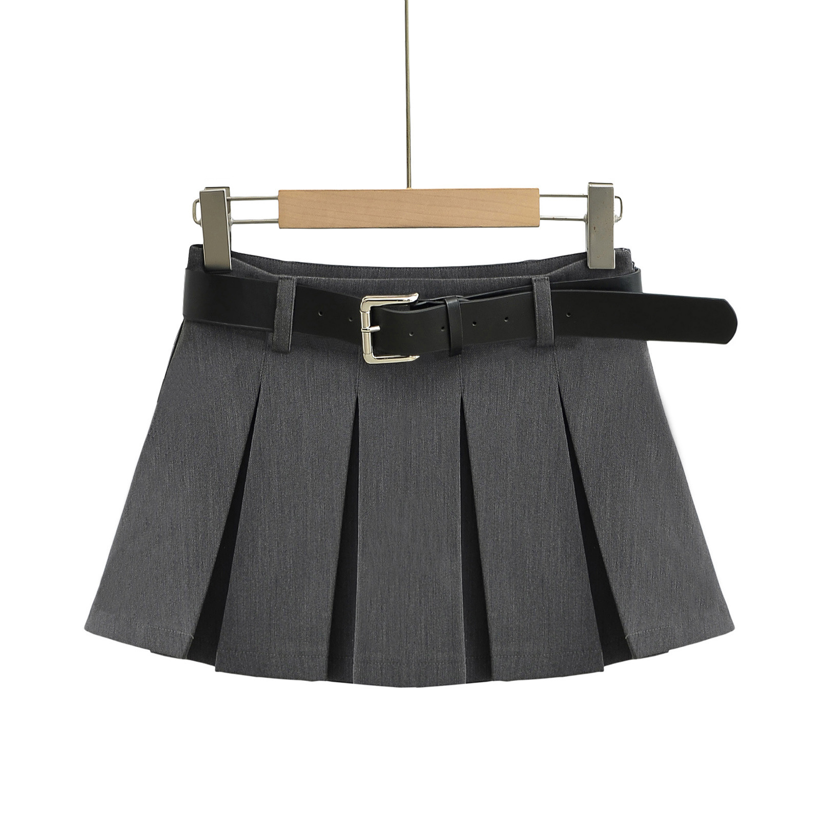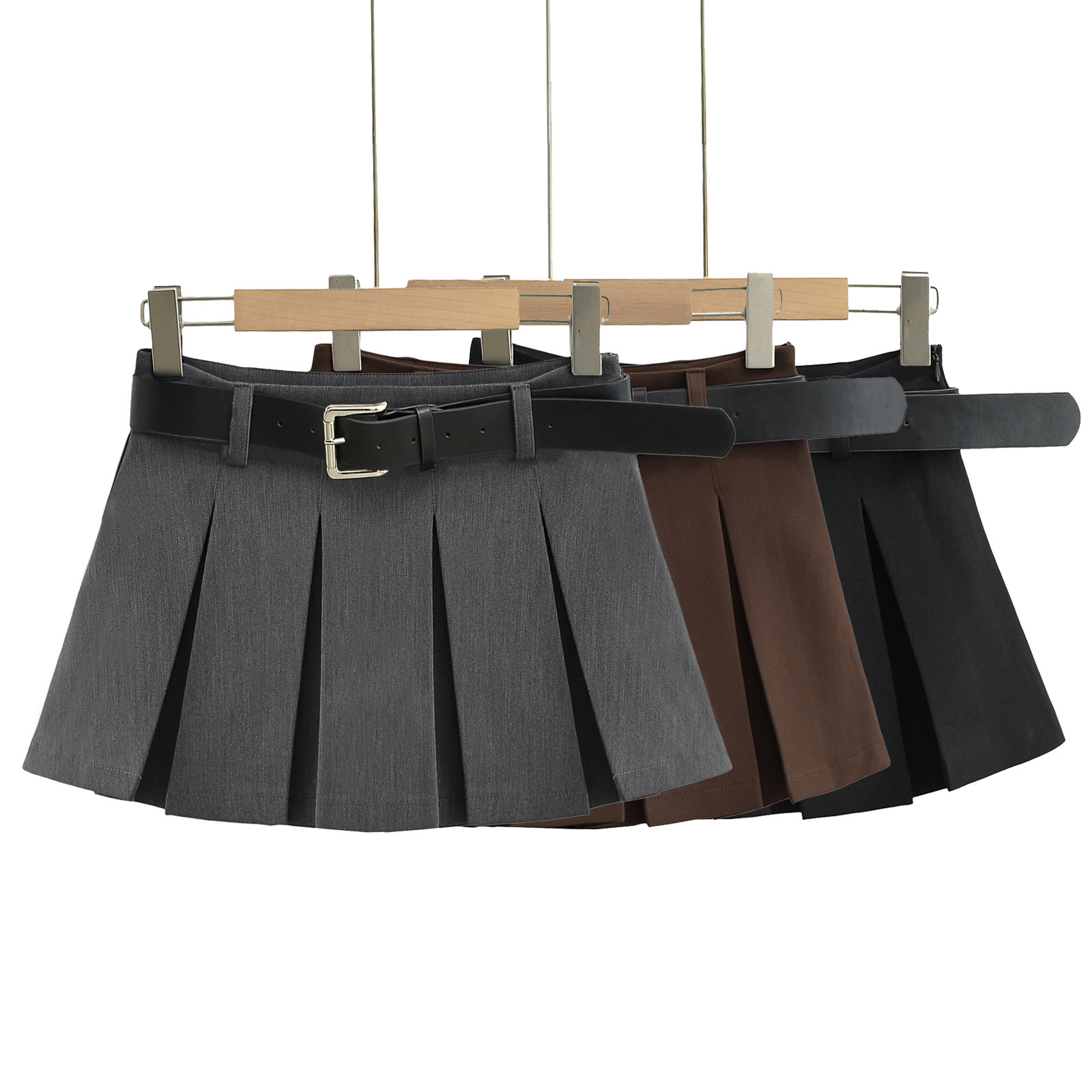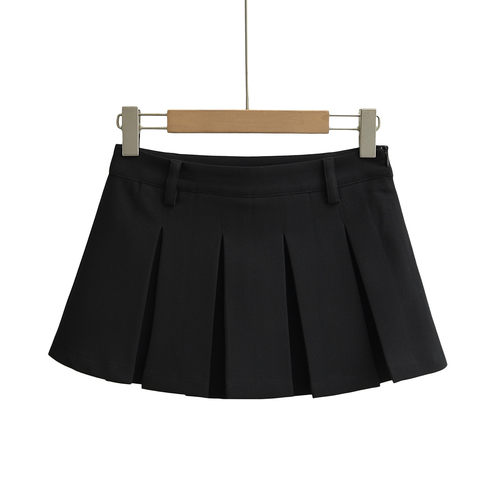 미국 복고풍 스타일의 간단한 올 매치 하이 허리 주름 스커트 울트라 짧은 단색 스커트 안티 노출 프레피 스타일 슬리밍스토어 가기