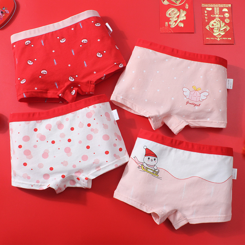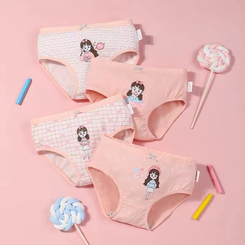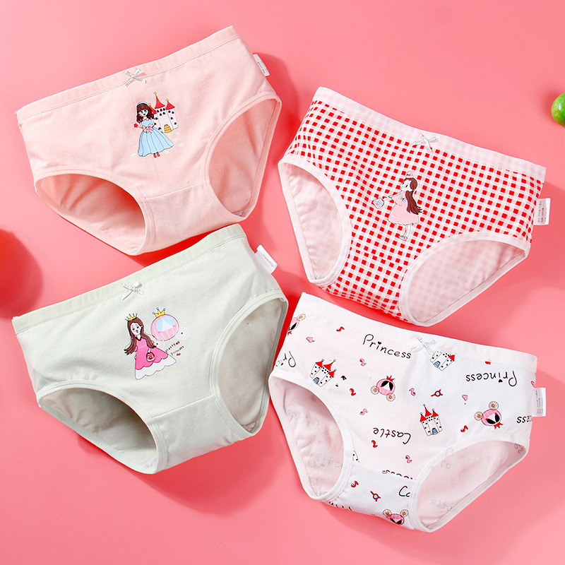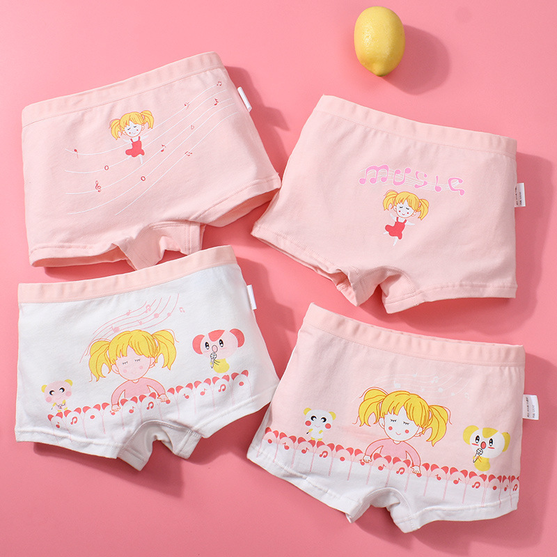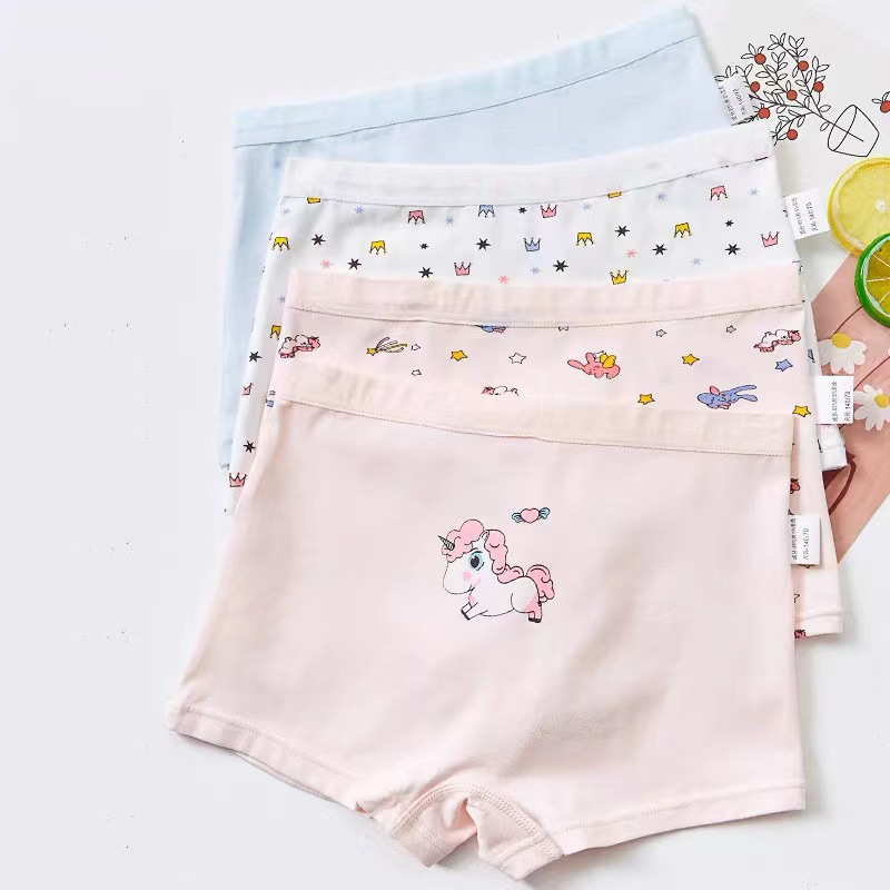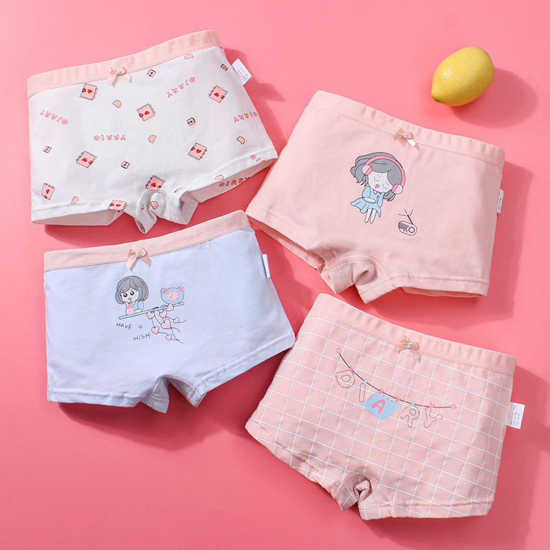 [4 팩] 어린이 면 통기성 속옷 소년 소녀 학생 귀여운 만화 복서 여자 브리프스토어 가기