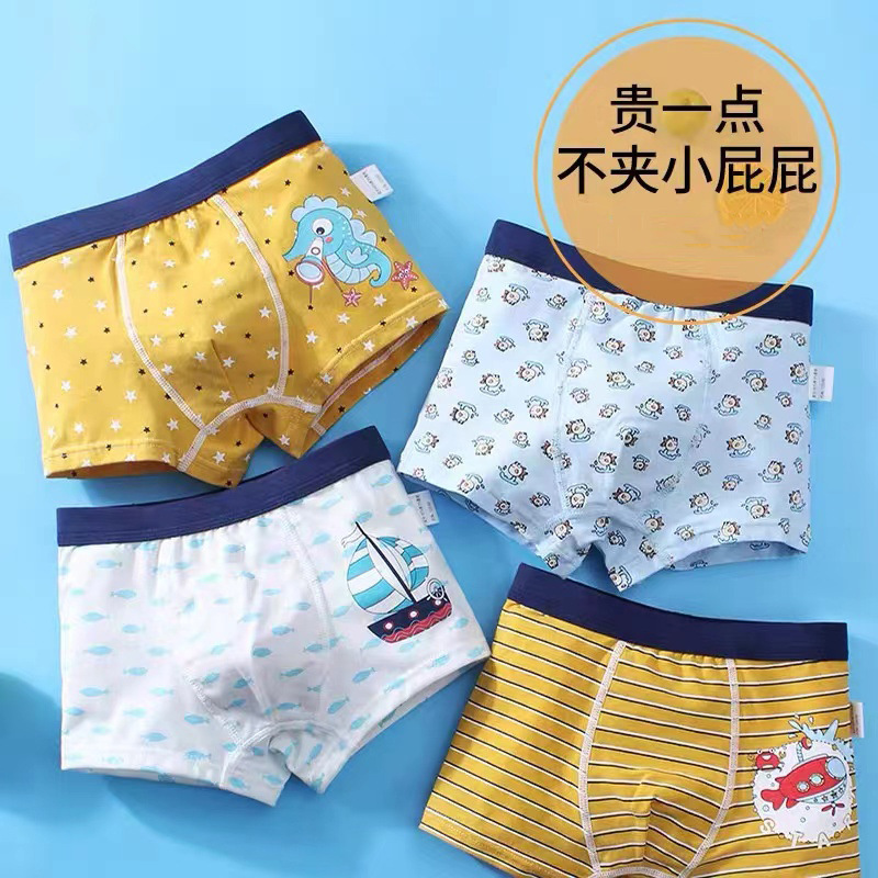【四条装】儿童纯棉透气内裤男女童学生可爱卡通四角裤女童三角裤