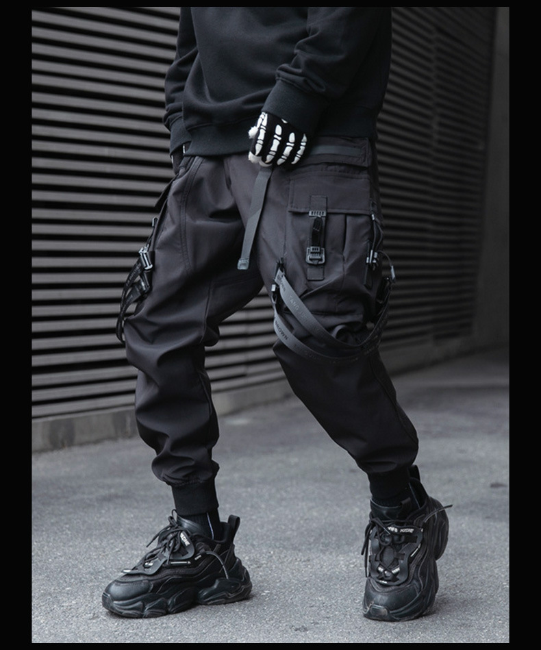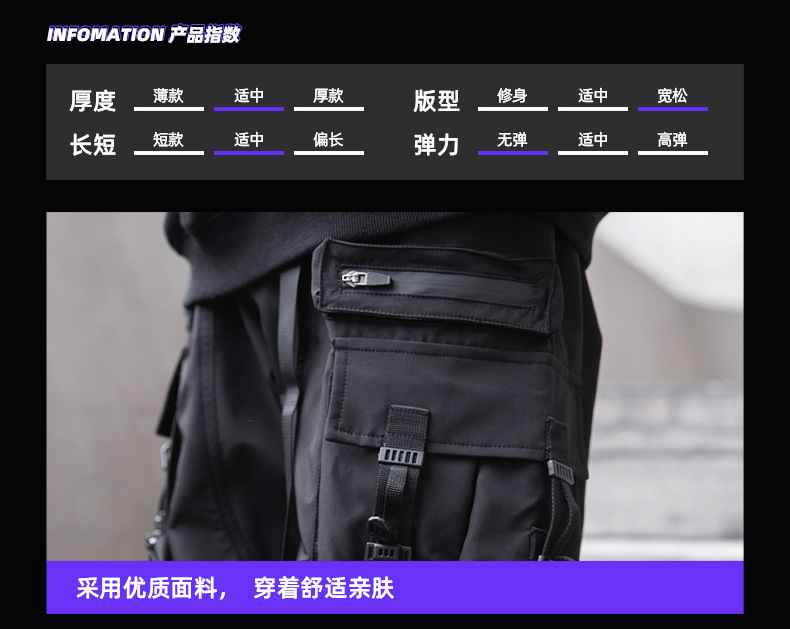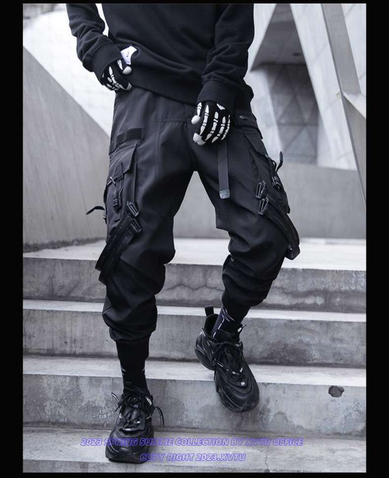 봄과 가을의 어두운 패션 브랜드 바지 남성 슬림 핏 슬리밍 부츠 바지 스트리트 패션 기능성 바지 Ruan Shuai 발목 길이 바지스토어 가기