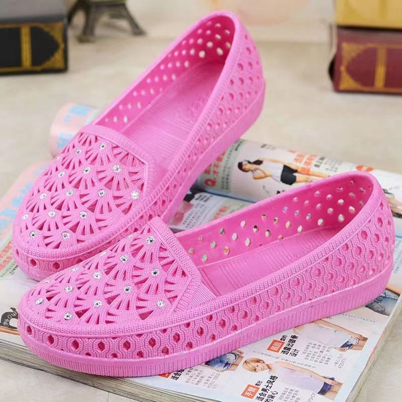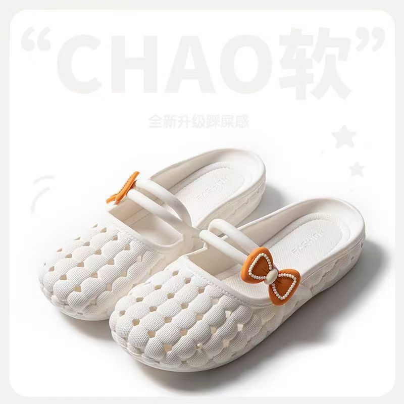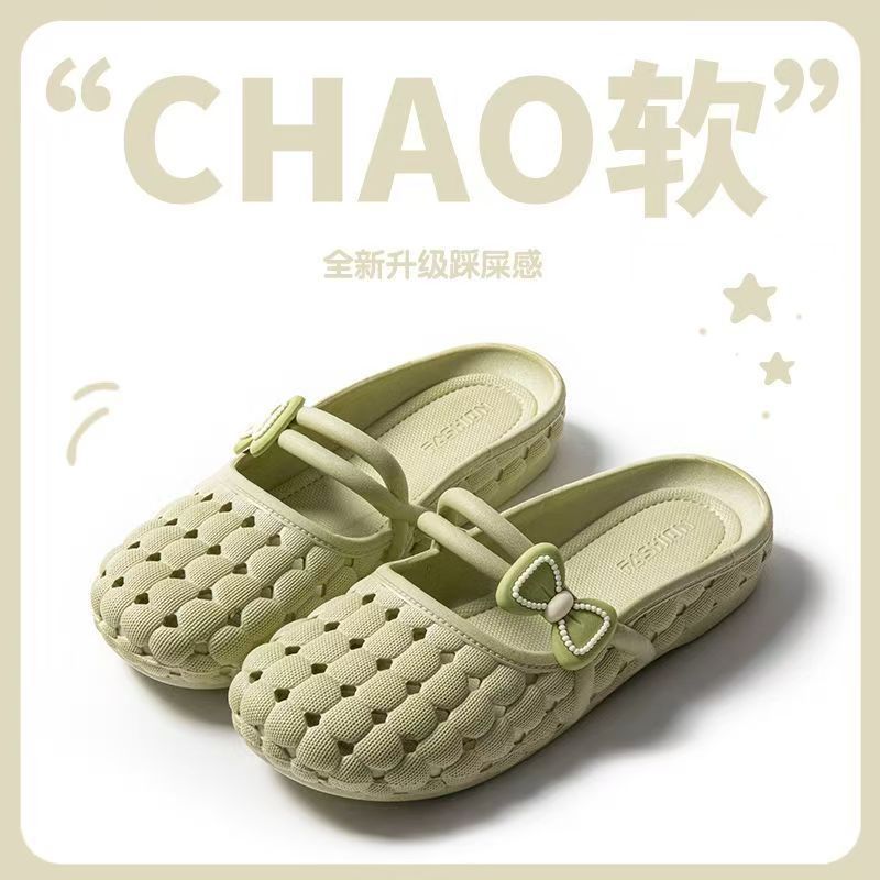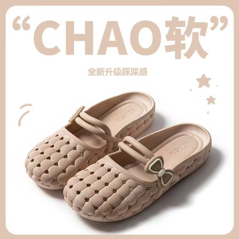 여름 새 구멍 신발 바오터우 슬리퍼 여성용 미끄럼 방지 귀여운 캐주얼 홈 의상 부드러운 바닥 욕실 통기성 샌들스토어 가기