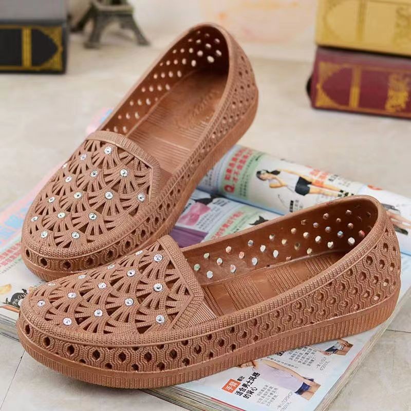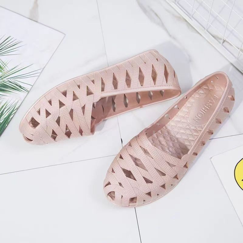 여름 새 구멍 신발 바오터우 슬리퍼 여성용 미끄럼 방지 귀여운 캐주얼 홈 의상 부드러운 바닥 욕실 통기성 샌들