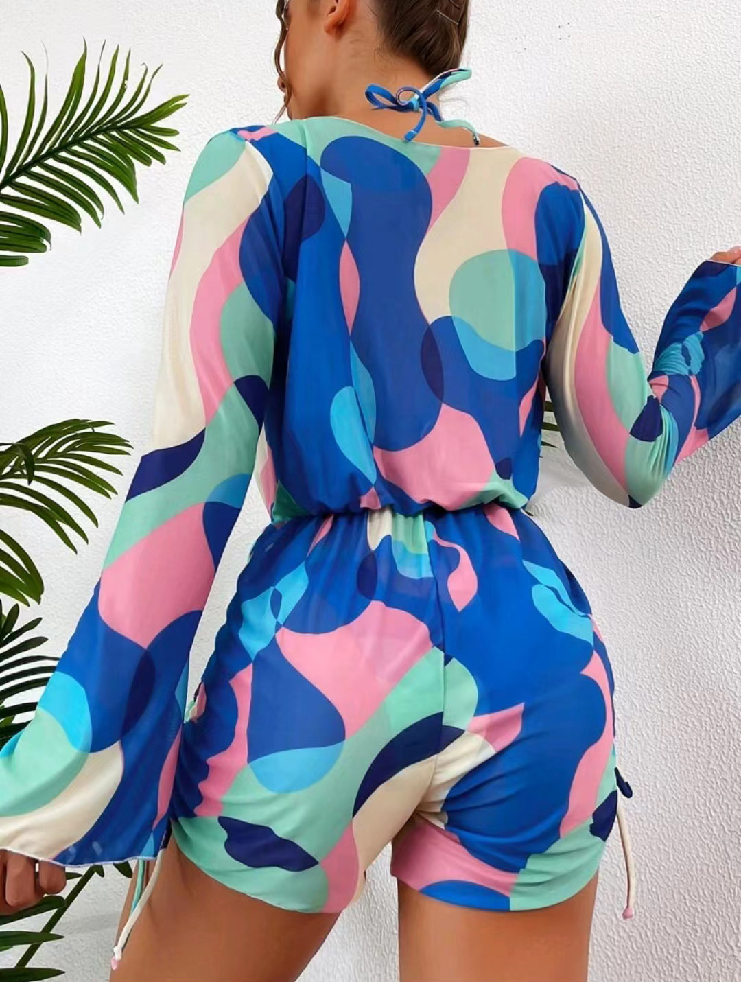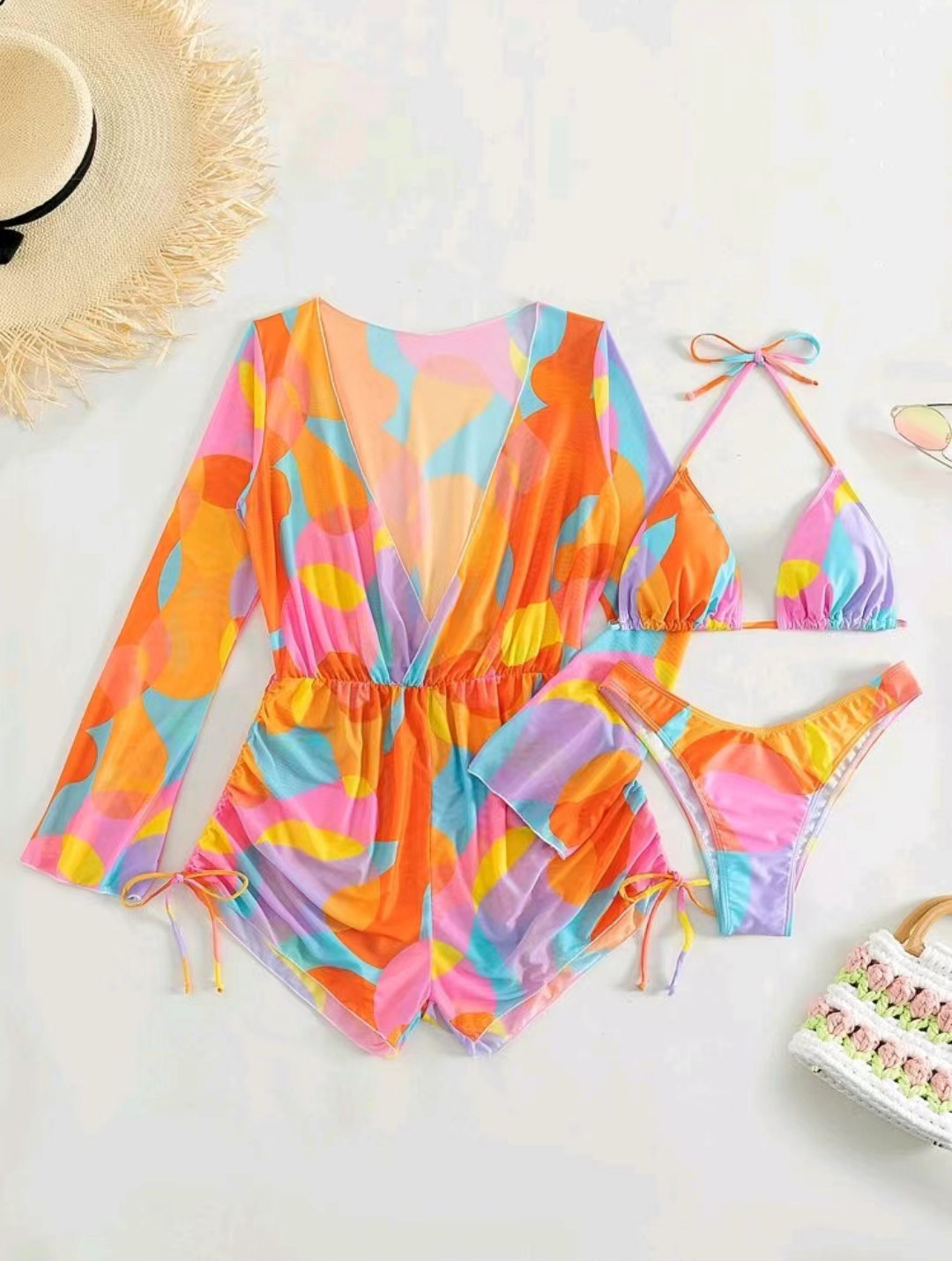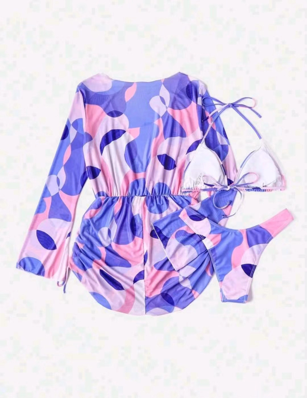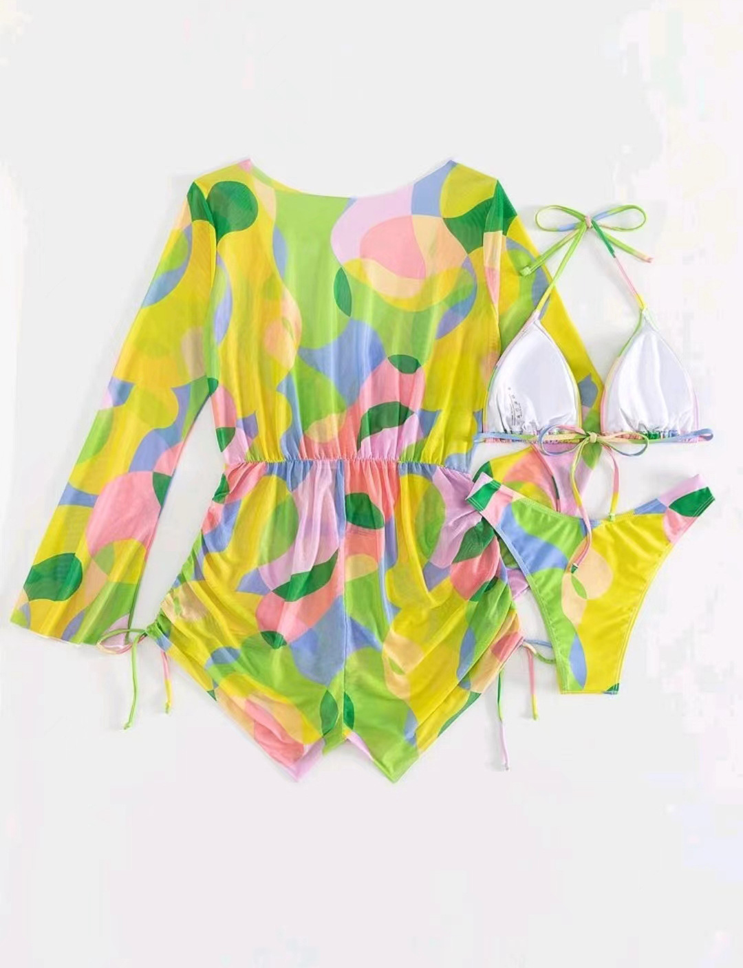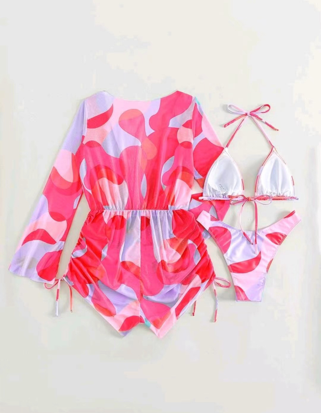 국경 간 대외 무역 2024 새로운 수영복 원피스 긴 소매 메쉬 블라우스 비키니 3 피스 수영복 비키니