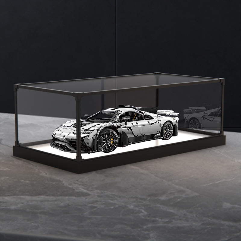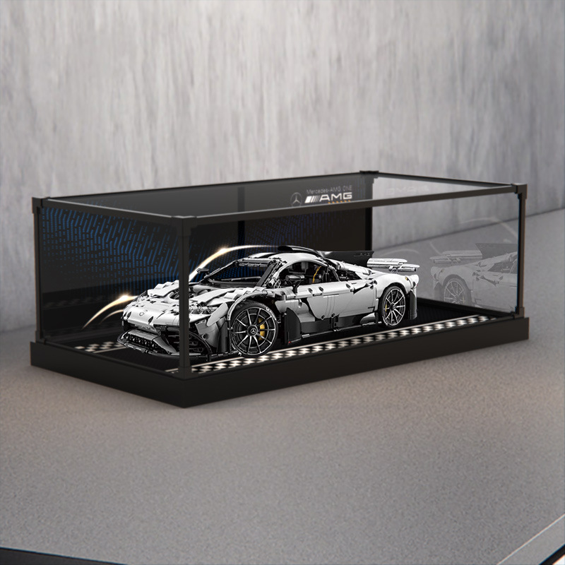 더블 독수리 클릭 메르세데스 amgone 조립 럭셔리카 로고 합금 프레임 먼지 커버 아크릴 투명 디스플레이 상자