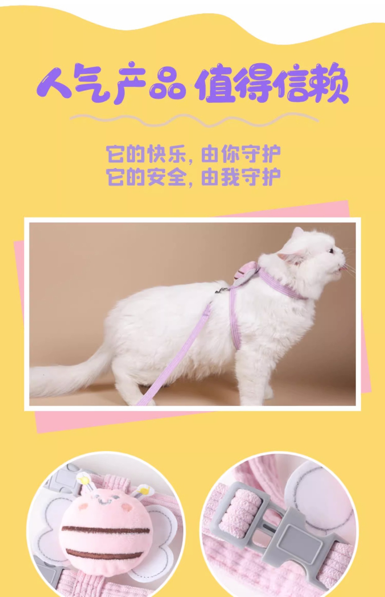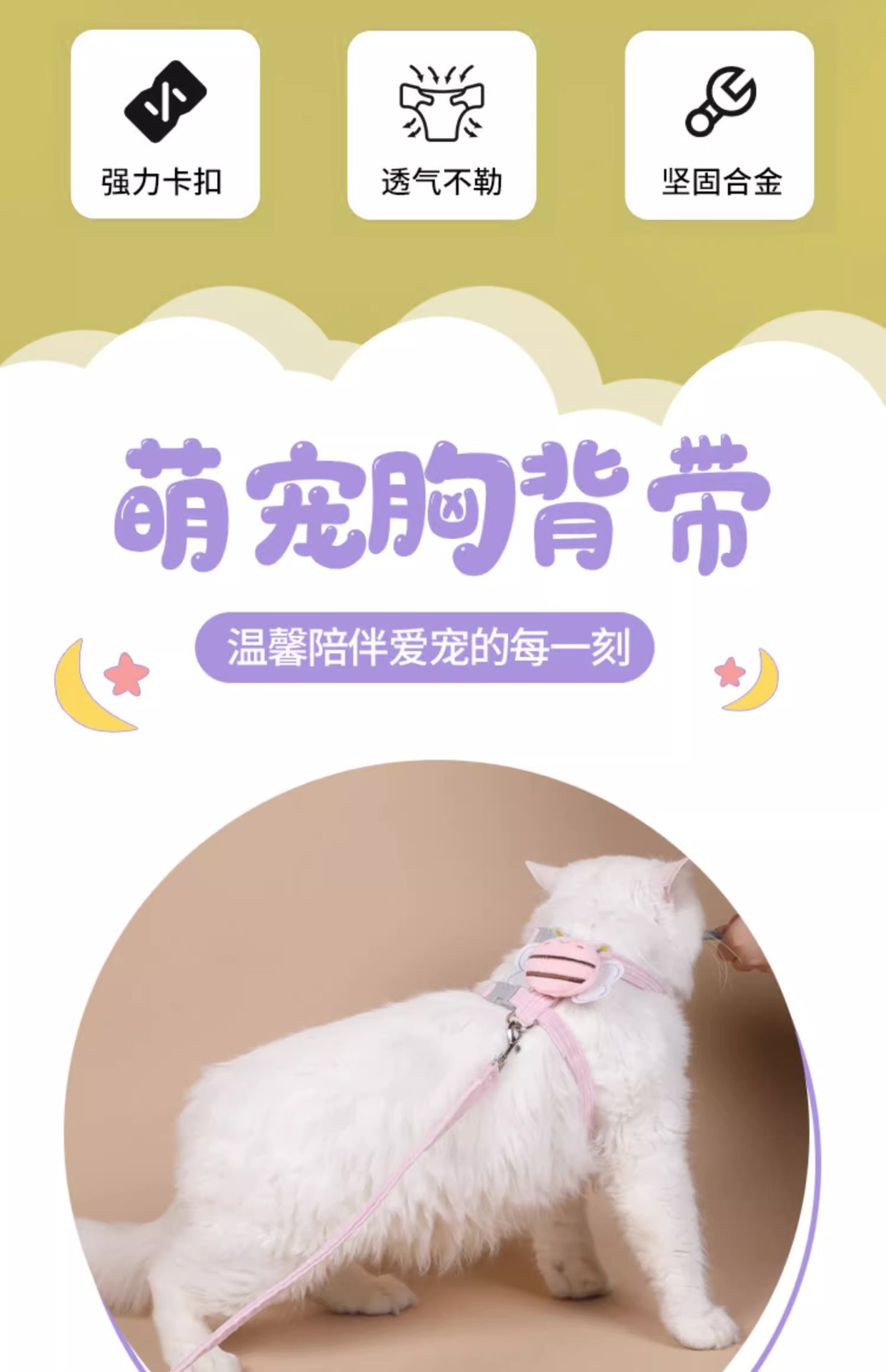 고급스러운 고양이 목줄, I자형 탈출방지, 인터넷 인기 상품, 가슴끈, 외출용 고양이 산책줄, 반려동물 용품스토어 가기