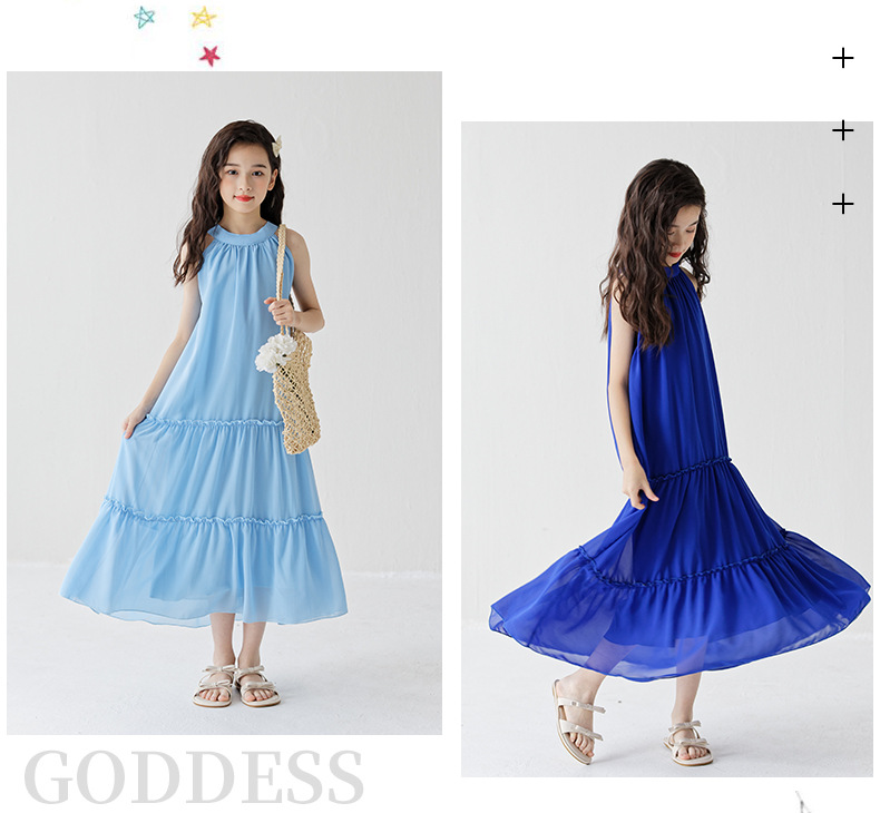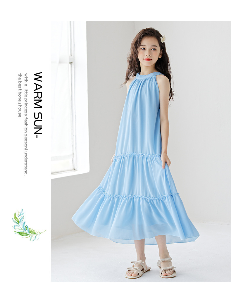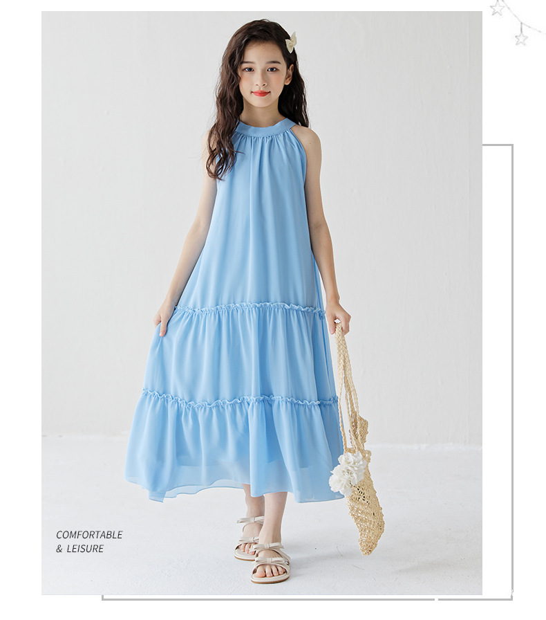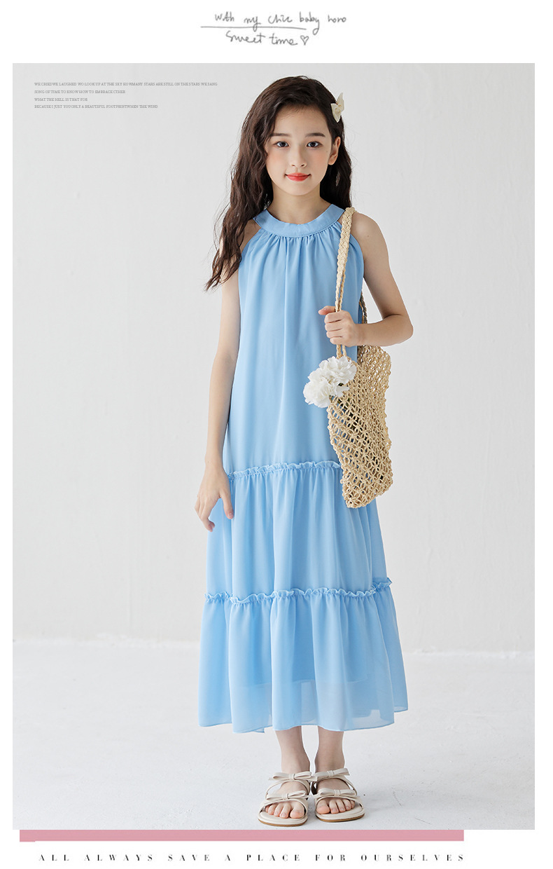 소녀의 여름 어린이 치마 국경 폭발 재고 큰 어린이 소녀 치마 스타일 공주 스커트 한국식 목에 매달린 원피스스토어 가기