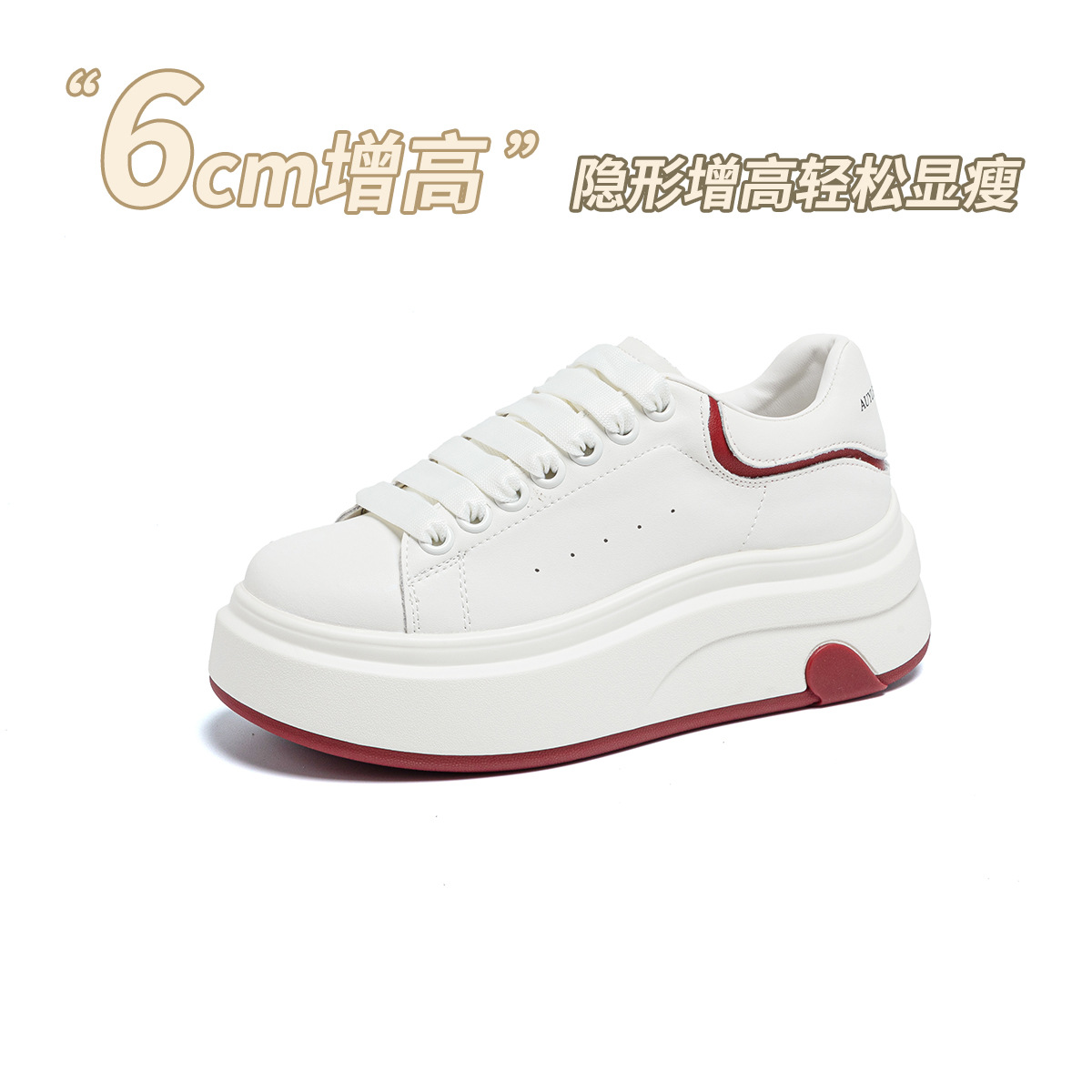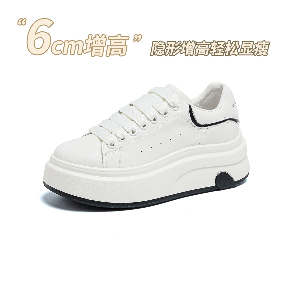 여성을위한 두꺼운 밑창 내부 강화 운동화 2025 봄 신작 정품 가죽 맥퀸 웨이브 바닥 흰색 신발 플랫폼 스포츠 및 캐주얼 신발