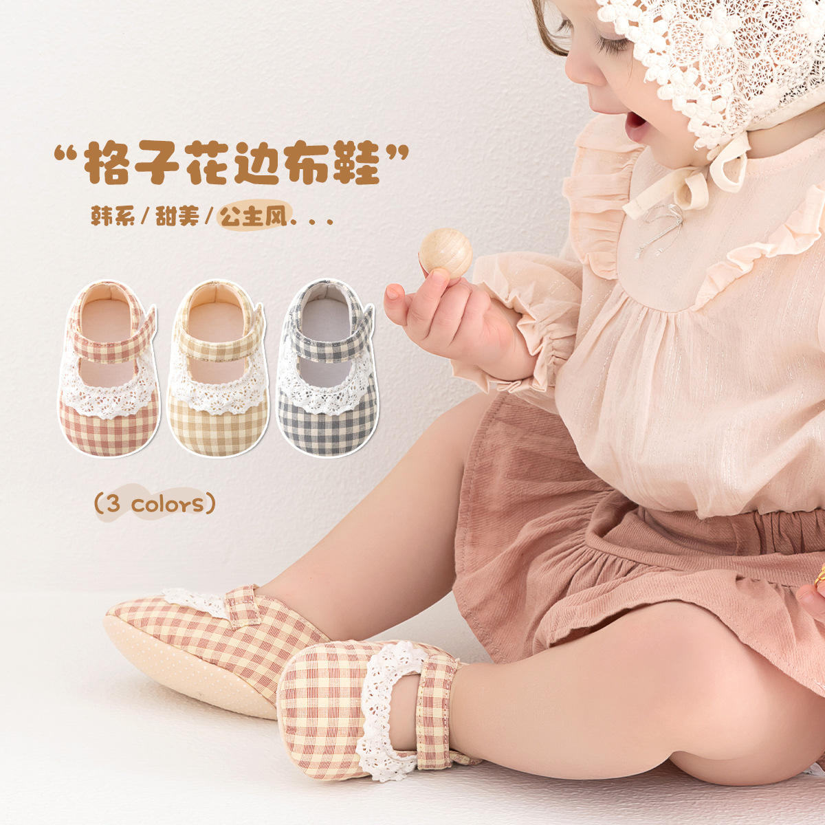 면 아기 신발 6-12 개월 유아 신발 레이스 벨크로 아기 조기 교육 실내 부드러운 바닥 바닥 신발스토어 가기