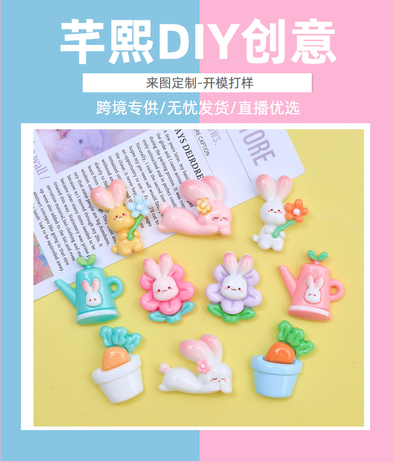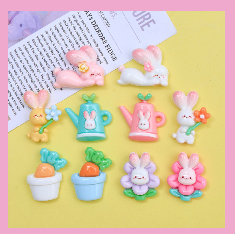 귀여운 꽃 토끼 만화 크림 접착제 액세서리 창조적 인 신발 버클 소재 수지 액세서리 diy 보석 머리핀스토어 가기